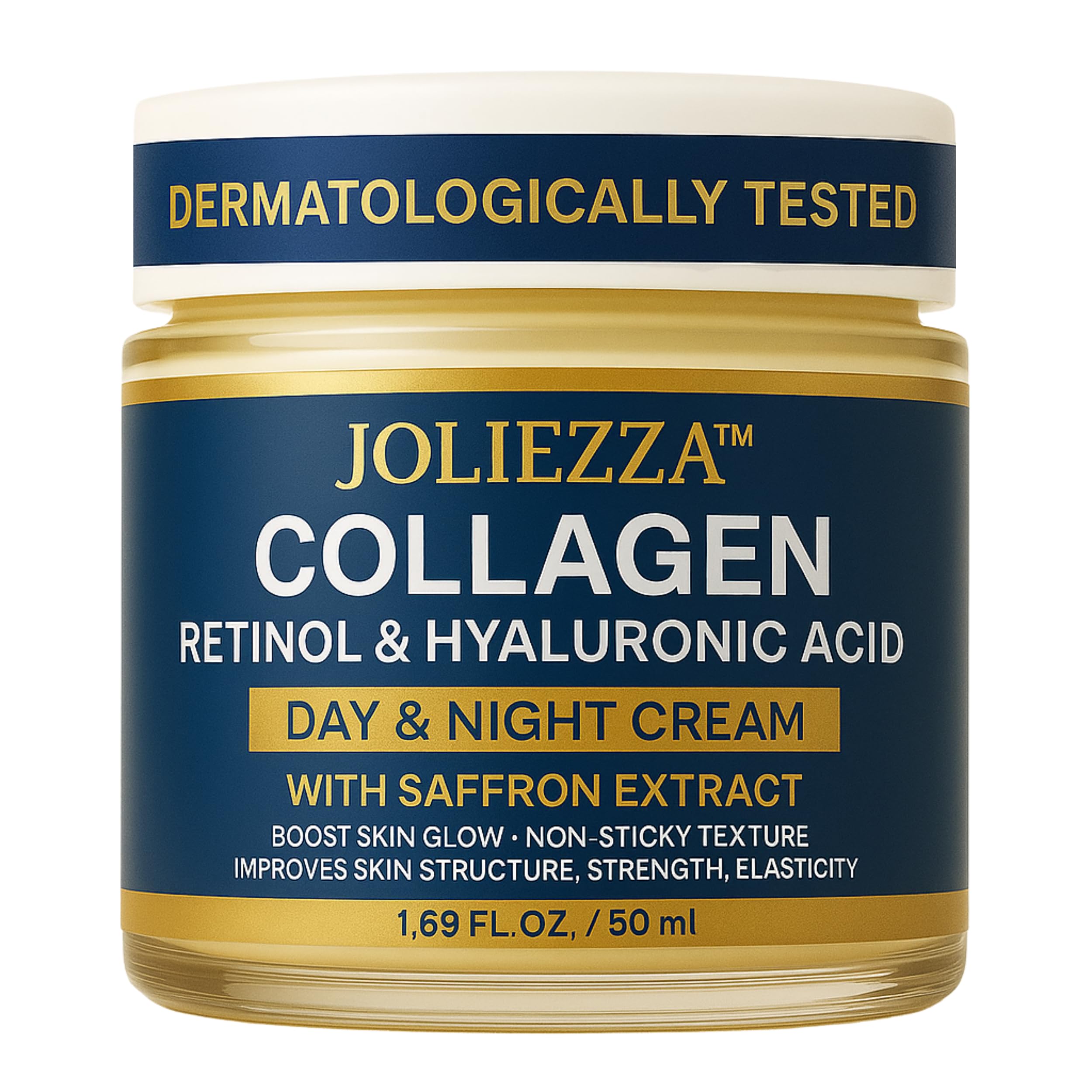 Joliezza Collagen Retinol Face Cream Anti-Aging Moisturizer with Hyaluronic Acid & Saffron Firming Hydrating Cream for Face Neck & D collet 1.69 fl oz / 50ml Pack of 1