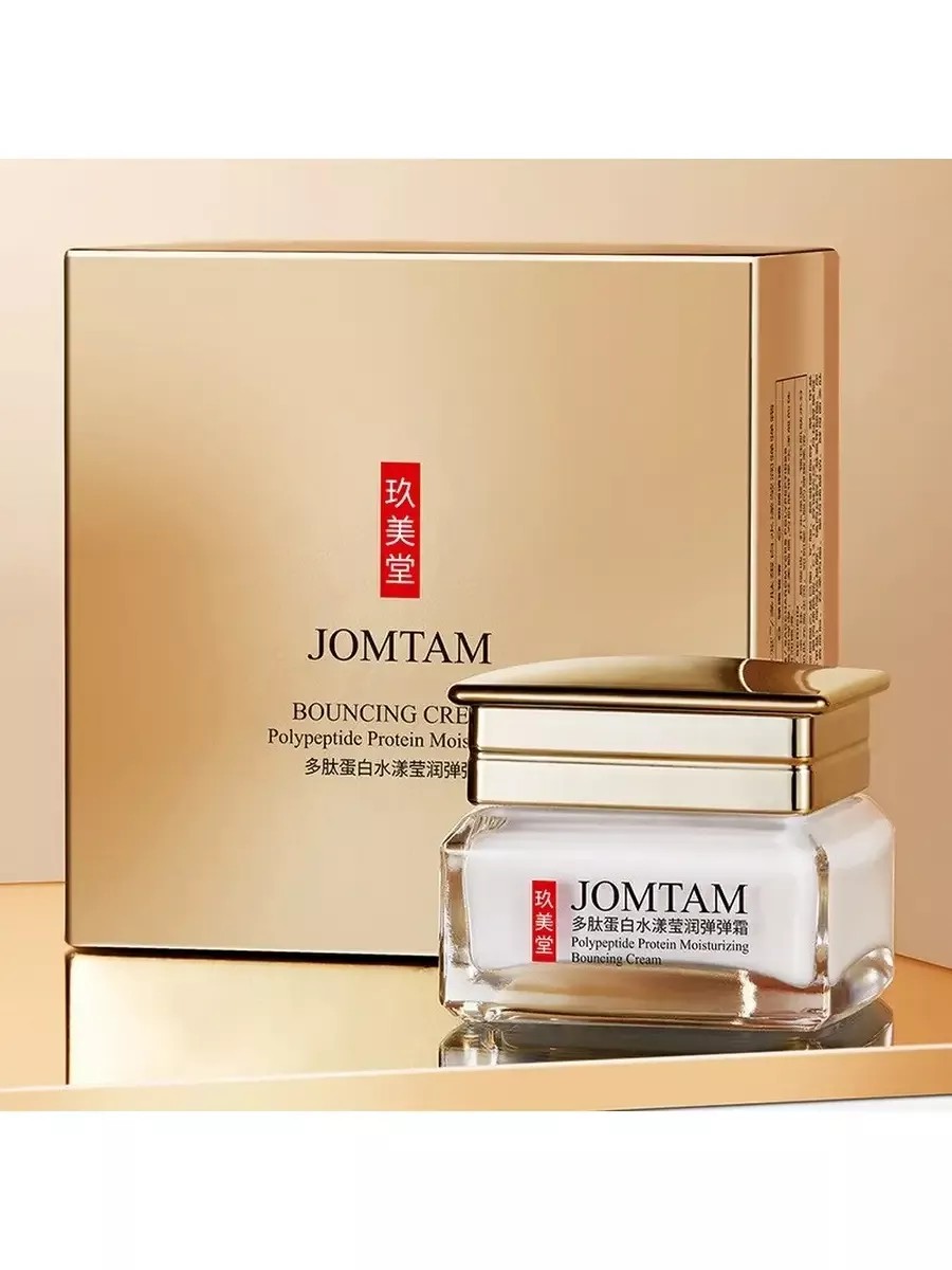 Jomtam Anti-Aging Polypeptide Face Cream is a unique skincare product designed specifically to maintain the health, youthfulness, and beauty of facial skin. The polypeptides in the cream perform several important functions for the skin. Collagen Stimulation: Polypeptides help increase collagen production in the skin, which promotes firmness and elasticity. This can help reduce wrinkles and fine lines. Inflammation Reduction: Some polypeptides have anti-inflammatory properties, which helps reduce redness and irritation on the skin. Skin Texture Improvement: Regular use of a polypeptide cream can make skin smoother and more uniform, improving its texture. Hydration: Many polypeptide creams also contain hydrating ingredients that help the skin retain optimal moisture levels. This anti-aging serum cream with hyaluronic acid and collagen, as well as peptides and retinol, offers a powerful lifting effect for mature skin. It combats wrinkles, deep folds, and tightens the skin, giving it a youthful appearance. Rejuvenating effect: This polypeptide cream helps reduce pigmentation and improve skin tone, leaving it more even and radiant. Light texture: This cream has a light and delicate texture, making it ideal for daily use. It is quickly absorbed and does not leave a greasy feeling on the skin. It can be used as a makeup base. Whitening and brightening effect: This cream serum helps eliminate pigmentation, dark circles, and freckles, restoring a healthy skin tone. Hypoallergenic: Many polypeptide creams are designed with sensitive skin in mind and are hypoallergenic, making them suitable for people with different skin types. Protection and regeneration: Our products contain vitamin E and panthenol, which help protect the skin around the eyes from negative environmental influences and promote its regeneration.