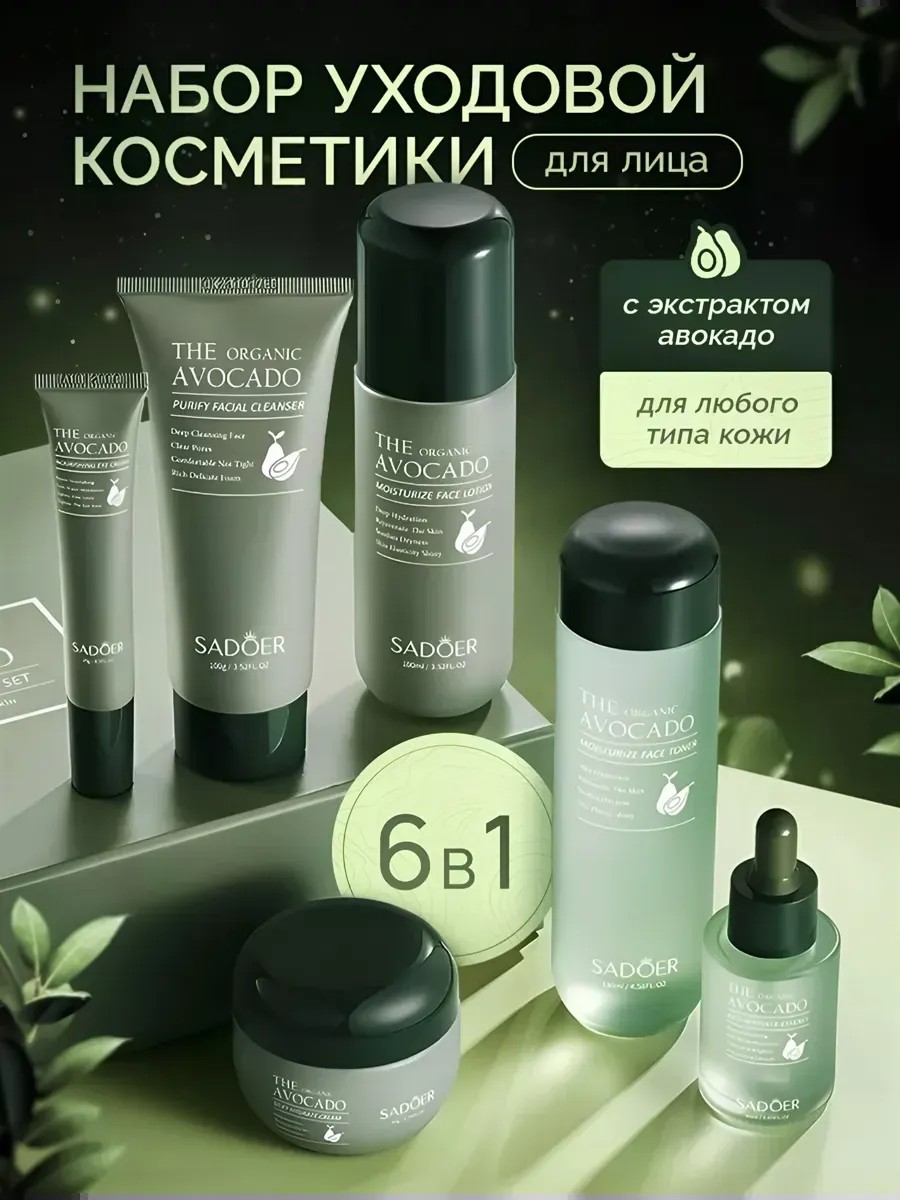Оригинальный набор! Бренд SADOER разработал серию The Organic Avocado специально для женщин бальзаковского возраста. Масло авокадо - кладезь ненасыщенных жирных кислот, витаминов и минералов, которые великолепно усваиваются клетками. Также в его состав входит ретинол — самый популярный активный ингредиент, способный обновлять клетки кожи.