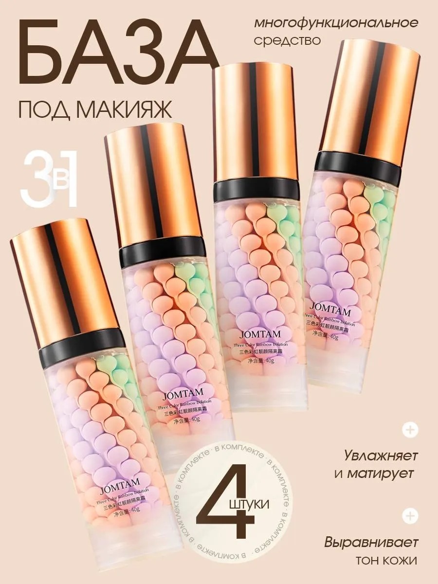База для лица трехцветная- это три средства в одном, которые гармонично взаимодействуют и позволяют добиться идеально-нежной, бархатной кожи без видимых следов маскирующего средства, Он одновременно выравнивает тон, улучшает структуру и рельеф кожи. Трёхцветная выравнивающая основа под макияж или база под макияж имеет три тонирующих цвета, которые идеально скрывают все недостатки по тону и текстуре кожи. Работает как корректор, после него вы наносите тональный крем и косметику ещё экономичнее. Нормализует работу сальных желез, увлажняет, придает ровный рельеф коже и скрывает поры. Трёхцветный праймер для лица jomtam 3в1 отлично подойдёт для лета так как имеет кремообразную консистенцию. Основа для макияжа состоит из трёх цветов, которые при нанесении смешиваются и работают по всему лицу. Фиолетовый - убирает желтизну лица. Зелёный - нейтрализует красноту, воспаления и раздражения Розовый - скрывает неровности кожи даёт мягкий ровный тон.