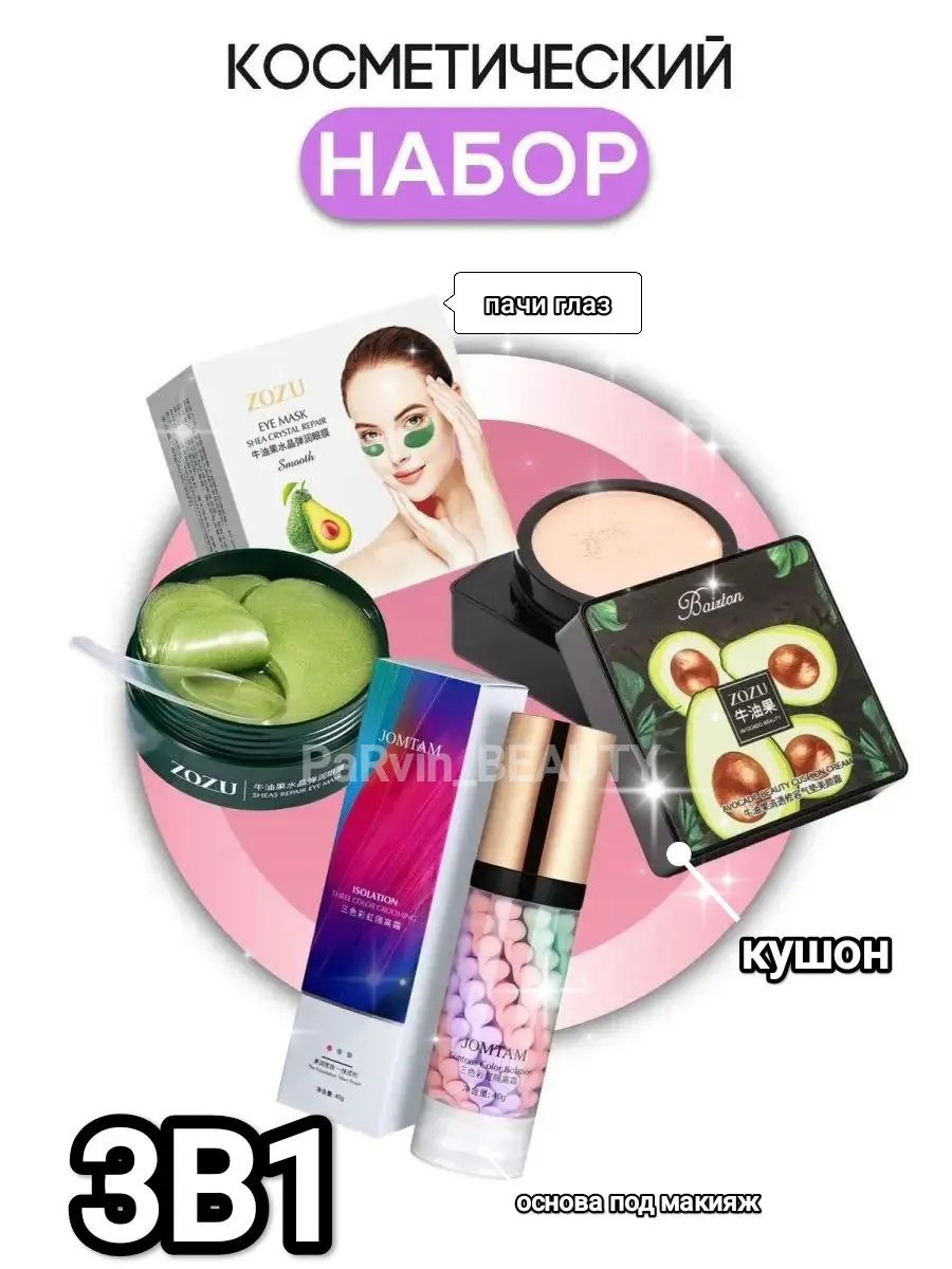 | Комплектация | база под макияж 1шт; Патчи для глаз 1шт; КУШОН ДЛЯ ЛИЦА 01 1ШТ |