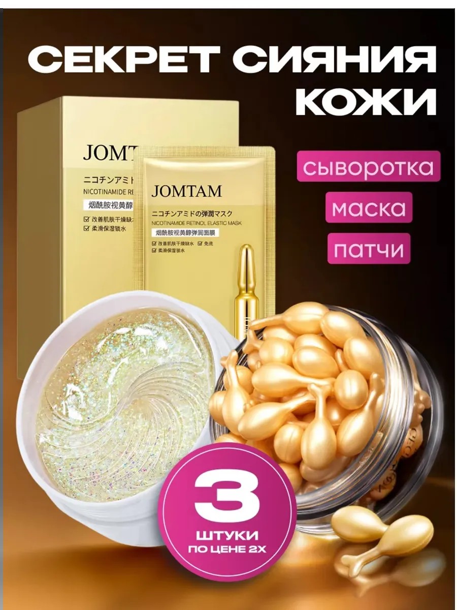 | Комплектация | Патчи - 60 шт.; Ложечка - 1 шт.; Ночные маски для лица - 30 шт.; Крем-сыворотка в капсулах - 30 шт. |
