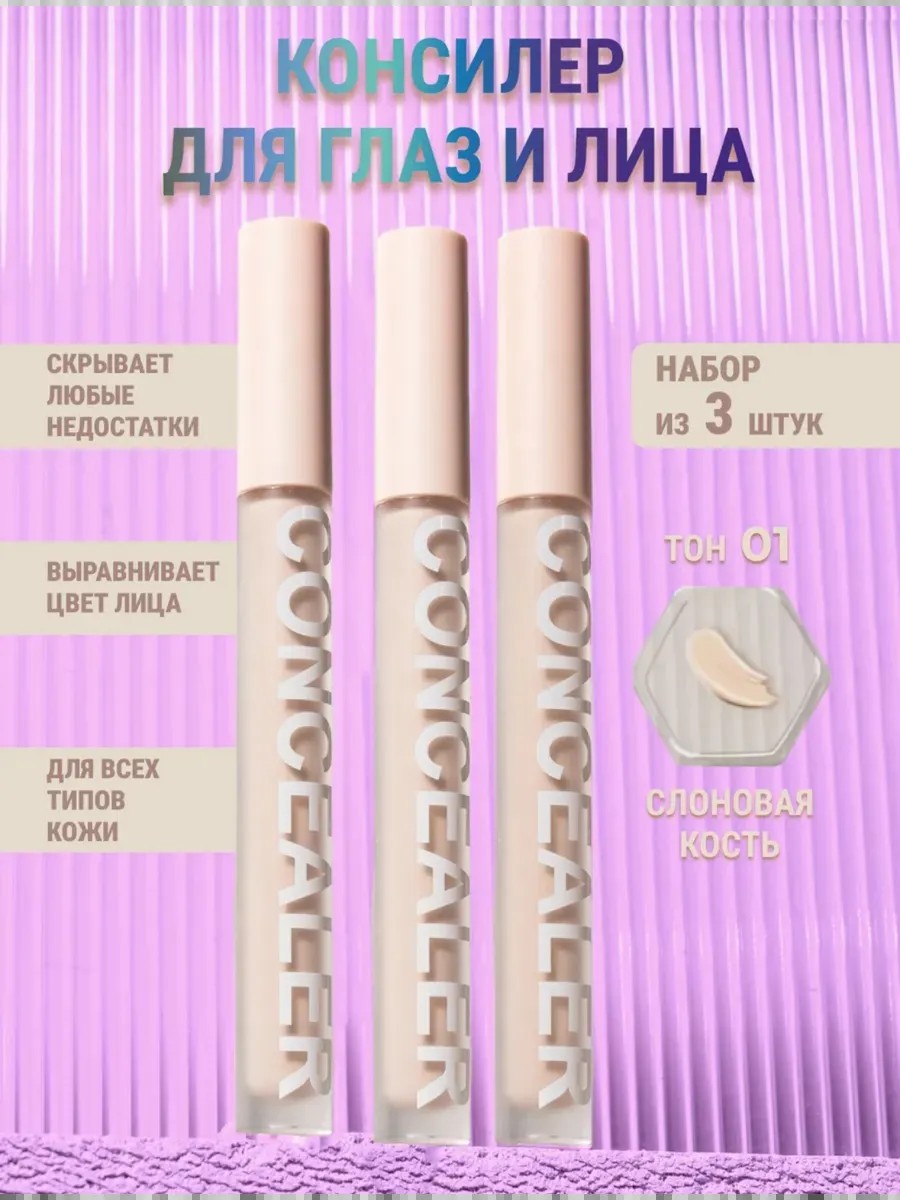 Набор консилеров из 3 штук представляет собой отличное средство для создания безупречного макияжа в тоне 01. Плотная кремообразная текстура контуринга позволяет быстро скрыть все несовершенства на лице: пигментацию, темные круги под глазами. Кремовый тональный консилер скульптор также эффективно маскирует поры и выравнивает тон, создает матовый финиш и ровный контур. Благодаря зауженному кончику аппликатора, можно точечно наносить контурирующий продукт, а его легкая и пластичная текстура не забивается и не сушит кожу под глазами. Жидкий и стойкий корректор в стике также идеально подходит в качестве базы под макияж и под тени. Это корректирующее косметическое средство с кисточкой актуально для всех типов кожи: жирной, сухой и подверженной возрастным изменениям. В составе консилера присутствует коллаген, который увлажняет и предотвращает сухость и шелушение. Благодаря этому продукту вы сможете достичь эффекта подтянутости,открытого взгляда, а так же убрать синяки, прыщи, веснушки, покраснения и морщины. Ваше лицо будет выглядеть сияющим и свежим в течение всего дня. Эта профессиональная женская косметика является отличным и эффективным средством, которое подходит для макияжа и ухода за собой для днаушек и женщин любого возраста, включая подростков. Поэтому, косметический консиллер стик станет прекрасным подарком для женщин на такие праздники, как день рождения, 8 марта или просто в качестве презента для мамы, сестры, дочки, подруги или жены.