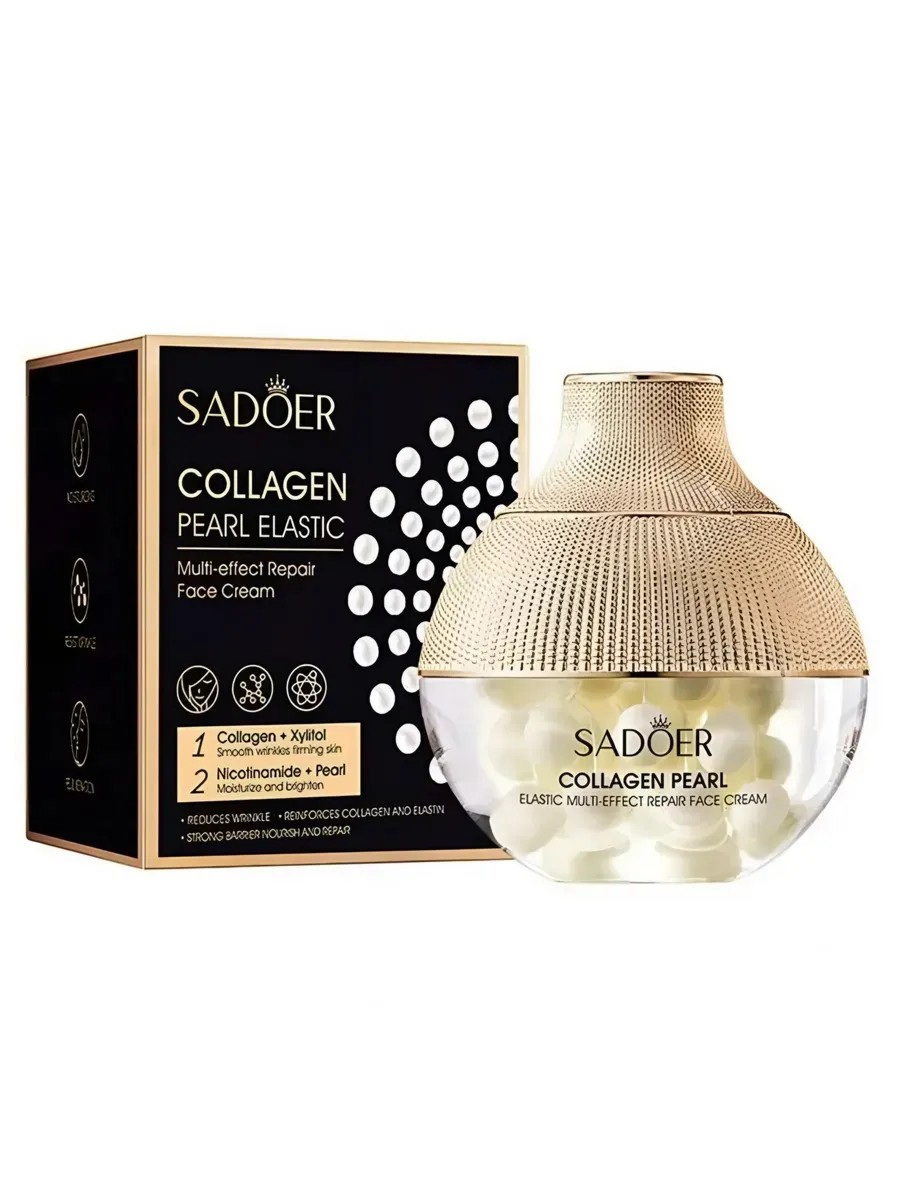 Крем для лица Sadoer Collagen Face Cream обеспечивает комплексный уход за кожей. Крем интенсивно питает, увлажняет, восстанавливает защитный барьер, оказывает лифтинг-эффект, мягко выравнивает тон кожи, дарит ей естественное сияние. Продукт обладает лёгкой текстурой, которая быстро впитывается, и поэтому подходит всем типам кожи, как сухой, так и комбинированной, с возрастными изменениями и при повышенной чувствительности. Подходит для использования на шее и декольте. В состав крема входит гидролизованный коллаген, никотинамид и экстракт жемчуга. Эти компоненты поддерживают упругость и эластичность кожи, увеличивают её плотность, осветляют пигментные пятна, работают против морщин. Экстракт жемчуга также питает кожу, делая её гладкой и бархатистой на ощупь. Крем обладает уникальной упаковкой с помпой, что лучше сохраняет качество продукта. Легкая текстура впитывается быстро, не оставляя липкости. Можно использовать как базу под макияж. Оцените качество и эффект китайской косметики уже сегодня. Большой объём 70 мл делает покупку особено выгодной. Необычный дизайн упаковки в китайском традиционном стиле делают его эффектным подарком женщине к любому празднику. Способ применения: шаг 1 - обязательно очистить лицо тоником, шаг 2 - нанести сыворотку коллаген , шаг 3 - нанести крем на лицо и шею, шаг 4 - массажными движениями помочь крему впитаться. Можно воспользоваться роллером, шаг 5 - нанести тональный крем, чтоб защитить эффект увлажнения и лифтинга. (сопутствующие косметические продукты смотрите в нашем магазине - у нас есть хороший выбор сывороток и крем с массажным роллером).