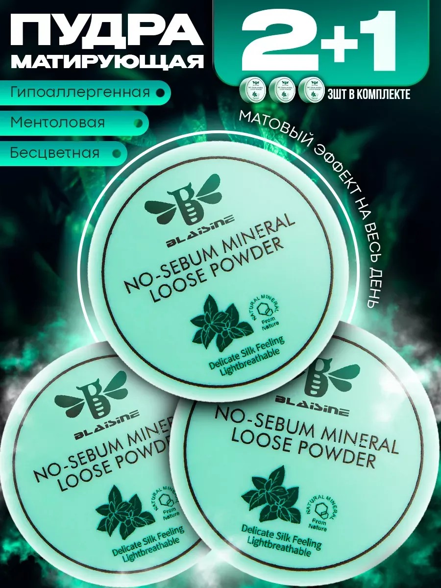 Пудра для лица матирующая, рассыпчатая, минеральная