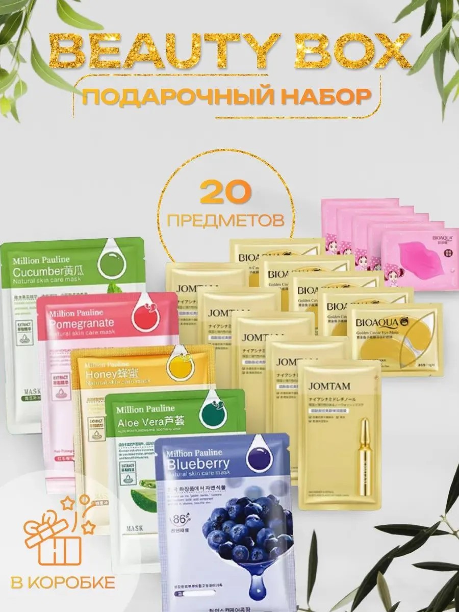 Средства входящие в Бьюти бокс, заменят Салон красоты, потому что в его составе только самое необходимое и нужное, чтобы оставаться всегда свежей и ухоженной! Уход за кожей лица и тела, неотъемлемая часть нашей жизни. Гидрогелевые патчи для глаз- лучший друг женщины по утрам, они не только возвращают свежесть коже и внешнему виду с утра, но и оказывают омолаживающий эффект/питают производят увлажнение кожи, снимают отечность вокруг глаз. Увлажняющая/богатая витаминами/ питающая/ разглаживающая тканевая маска, уменьшает потерю влаги, убирает сухость кожи, делает кожу лица более нежной и гладкой. Маски восстанавливают, повышают эластичность, выравнивают рельеф и разглаживают морщины. Патчи для губ смягчают тонкую и обветренную кожу, глубоко увлажняют, питают и устраняют шелушения. Питательная не смываемая маска для лица- хорошо питает, восстанавливает и увлажняет кожу.
