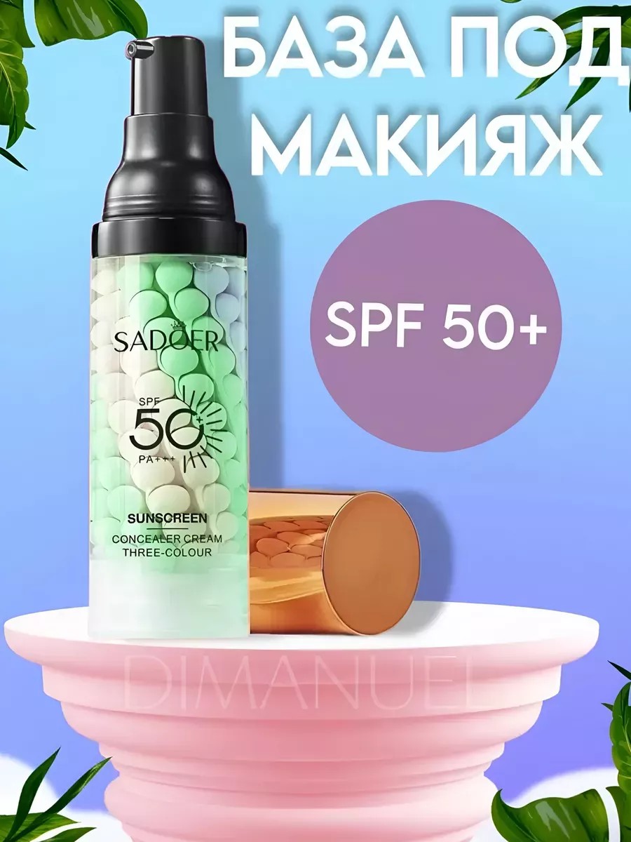 Осветляющая база Sadoer SPF50+ PA+++ - это косметическое средство, основа под макияж, которое отличное подготавливает кожу для нанесения декоративной косметики: тонального крема, ВВ- СС- кремов, консилера. Легко ложится, не оставляет липкости, увлажняет и выравнивает общий тон кожи лица. Благодаря увлажняющему действию, основа под макияж не подчеркивает шелушения. Защищает кожу от пагубного воздействия УФ-лучей. Отличный вариант, если Вы хотите улучшить общий тон и придать коже сияние, не используя плотные тональные кремы.