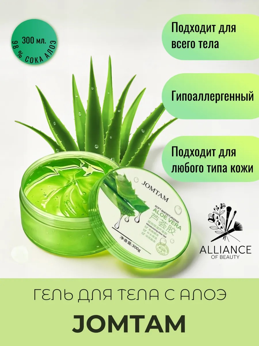 Гель алоэ вера Jomtam обогатит вашу косметику натуральной силой. Он идеально подходит как для мужчин, так и для женщин. Рекомендуется использовать его после умывания, чтобы увлажнить кожу и поддерживать её здоровье. Это универсальное решение станет отличной базой под макияж. Нежная текстура прекрасно впитывается, оставляя на коже легкое ощущение свежести. Гель богат смягчающими компонентами, что делает его идеальным после бритья. Устраните сухость и раздражения, побалуйте себя этим любимым по всей семье средством. Отлично подходит для подростков и детей, обеспечивая мягкое питание и защиту. Алоэ активно способствует восстановлению кожного покрова, придавая ей гладкость и сияние. Этот многофункциональный гель заменяет увлажняющий крем, мгновенно питая и увлажняя кожу. Подходит для всех типов кожи, включая чувствительную, жирную и проблемную. Гель алоэ вера эффективно борется с несовершенствами, снимает раздражение после бритья у мужчин, уменьшает отёки, а также ухаживает за кожей вокруг глаз и губ. Гель также отлично подходит в качестве освежающей маски для глаз. Просто нанесите немного на участок вокруг глаз, чтобы уменьшить отеки и подарить вашему взгляду яркость. Его легкая консистенция не утяжеляет чувствительную область. Этот гелевый продукт станет прекрасным подарком к любому празднику! Поставив баночку в формате подарок, вы порадуете маму или девушку оригинальным вариантом ухода за собой. Замечательный выбор как для младенцев, так и для взрослых! Мы уверены, что этот косметический помощник вскоре займет достойное место в Вашем уходовом наборе. Насладитесь полноценным увлажнением! Дайте коже то самое необходимое питание на каждый день. Порадуйтесь новыми ощущениями от природы! Защита от вредных воздействий окружающей среды теперь не только мечта, но реальность с этим уникальным натуральным продуктом. Используйте его как праймер под макияж, базу под косметику или как часть ежедневного ухода за лицом и телом.