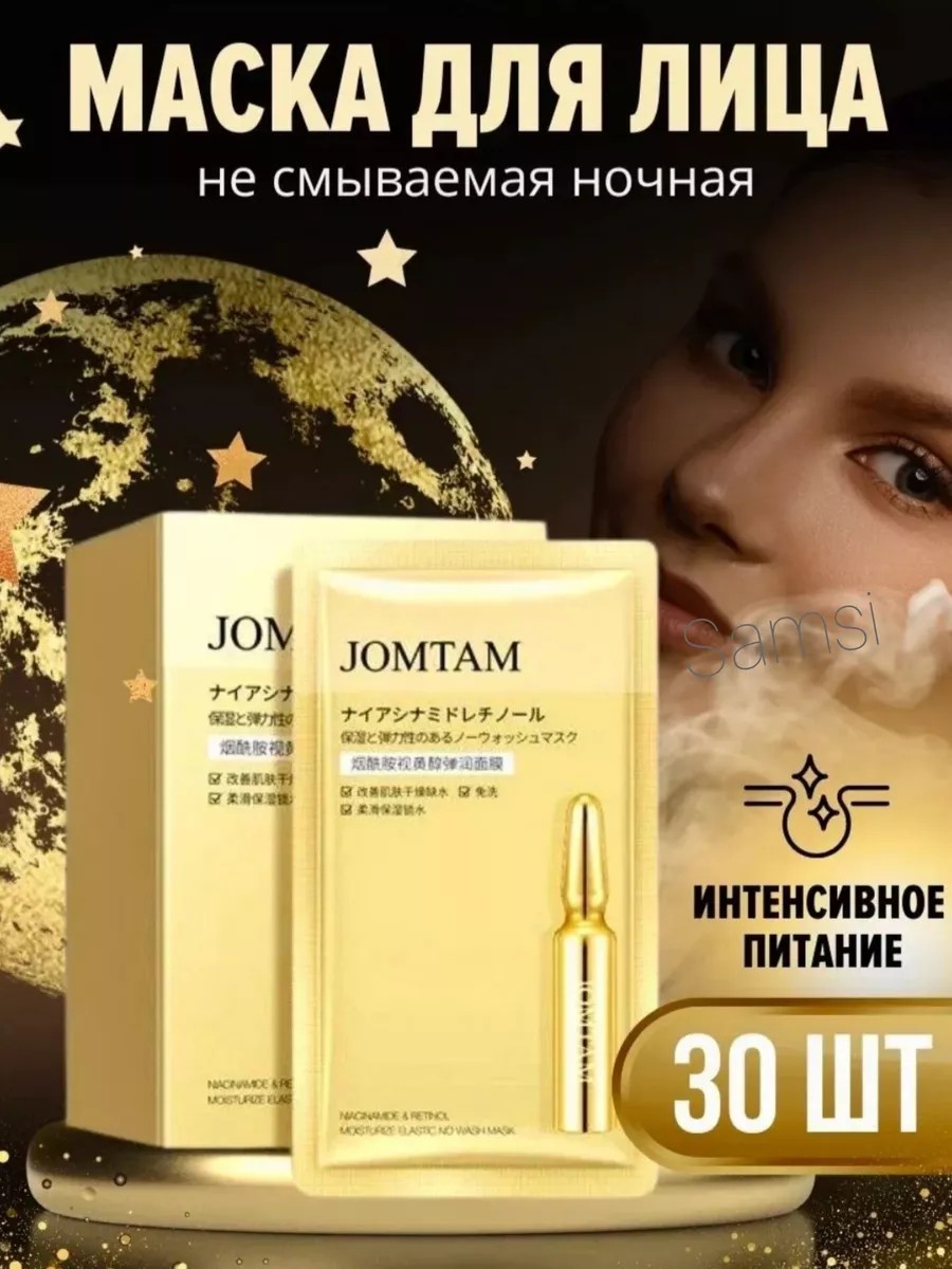 Маска для лица - это несмываемая питательная маска, с ниацинамидом, которая обладает подтягивающим эффектом и восстанавливает упругость кожи. Ниацинамид - активный осветляющий компонент, который выравнивает тон кожи, уменьшает выраженность пигментных пятен (пигментацию) отбеливает веснушки и постакне. Он также абсорбирует лишний жир, регулирует выработку подкожного сала и стягивает расширенные поры. Текстура маски кремовая, она наносится на лицо, как обычный крем. Консистенция маски плотная, густая, белого цвета с мелким золотистым шиммером, который заметен лишь после нанесения на лицо. Способ применения: перед нанесением маски тщательно очистите кожу от дневных загрязнений и макияжа. Аккуратно вскройте упаковку, выдавите косметическое средство на ладонь, затем нанесите на все лицо, шею похлопывающими движениями. Дайте маске немного впитаться перед тем, как лечь спать, не смывайте. Утром умойтесь водой и вы заметите, что кожа стала более нежной и эластичной. Из-за густой консистенции нанести маску на лицо непросто, но впитывается она отлично, не оставляя жирного блеска. Ночная маска для лица снимает следы усталости, восстанавливает общее состояние кожи. Ретинол для лица играет важную роль, он помогает уменьшить количество морщин и разглаживает кожу, а также убирает шелушения. Набор масок по 2г. в количестве 30 штук с коллагеном , для всех типов кожи, отлично питает, увлажняет и выравнивает кожу лица.