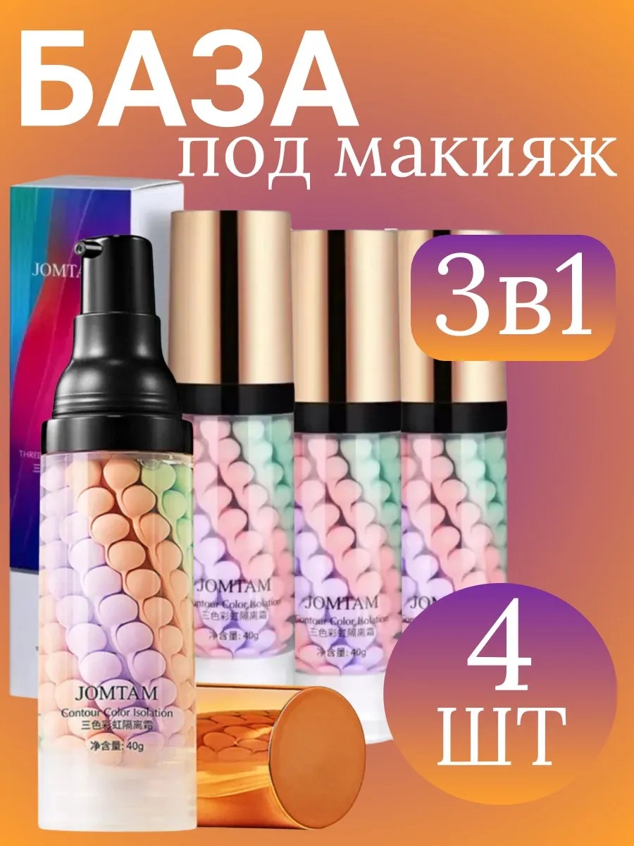 база под макияж JOMTAM-это идеальный выбор для безупречного макияжа. Этот набор из трех праймеров для лица поможет вам создать ровный тон, скрыть несовершенства и придать коже сияние. Кремовая, нежная и гладкая текстура праймеров легко наносится и распределяется, обеспечивая комфортное ношение в течение всего дня. Благодаря увлажняющим и питательным компонентам, праймеры не только выравнивают тон кожи, но и заботятся о ее здоровье. Водостойкая формула позволяет вам не беспокоиться о том, что макияж растечется или смажется в течение дня.