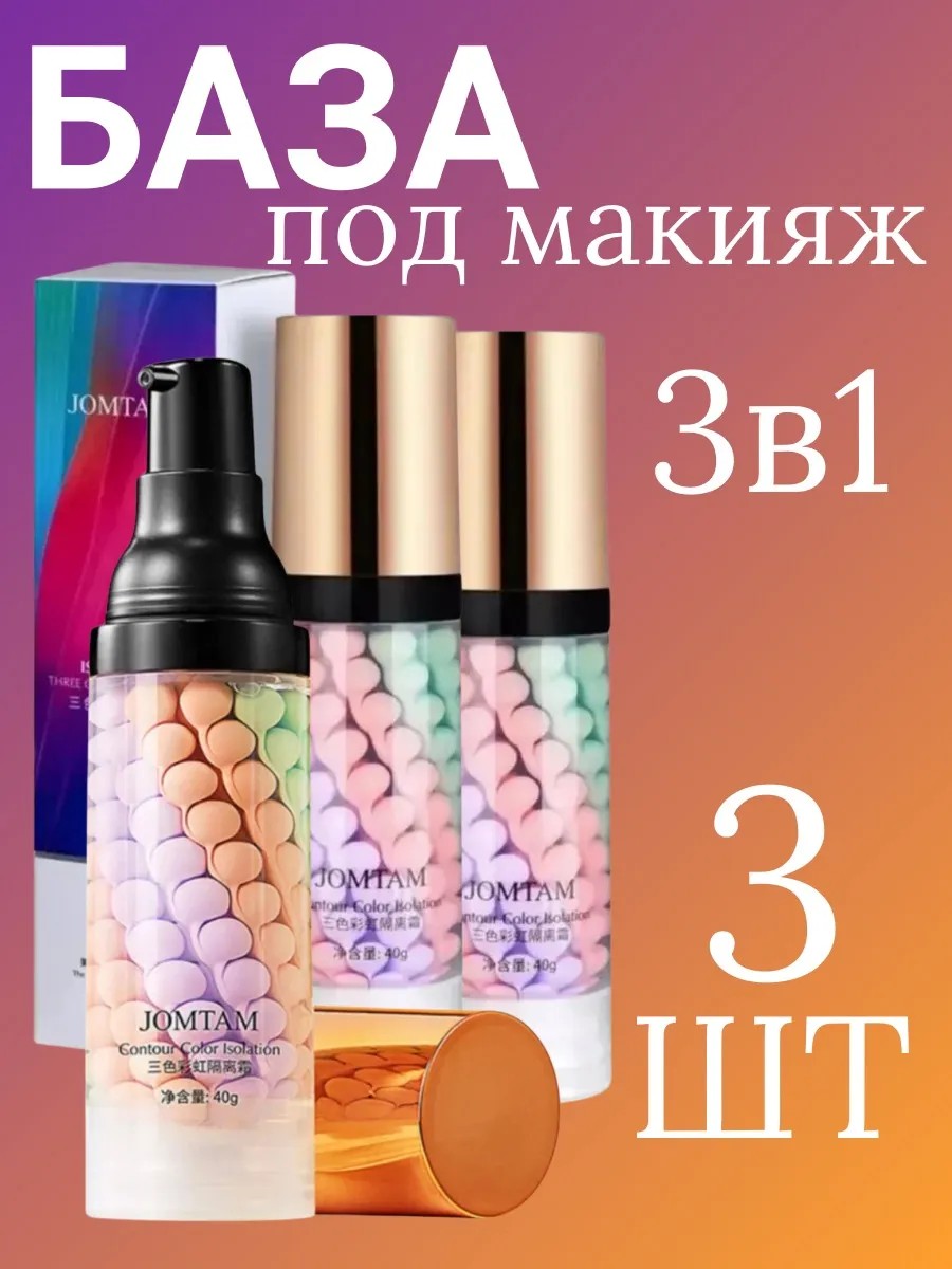 база под макияж JOMTAM-это идеальный выбор для безупречного макияжа. Этот набор из трех праймеров для лица поможет вам создать ровный тон, скрыть несовершенства и придать коже сияние. Кремовая, нежная и гладкая текстура праймеров легко наносится и распределяется, обеспечивая комфортное ношение в течение всего дня. Благодаря увлажняющим и питательным компонентам, праймеры не только выравнивают тон кожи, но и заботятся о ее здоровье. Водостойкая формула позволяет вам не беспокоиться о том, что макияж растечется или смажется в течение дня.