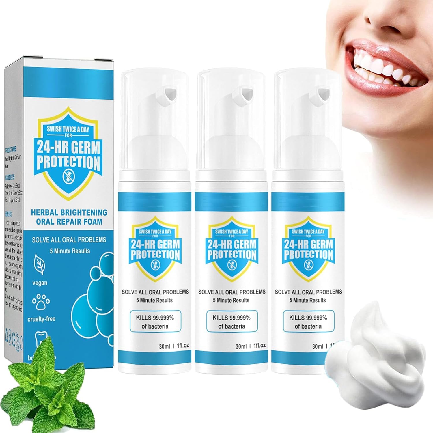 Suitable for everyone ---- Herbal Whitening Oral Repair Foam is suitable for everyone, also for children, young people and the elderly.Perfect toothpaste for bad breath and no side effects.Fresh breath ---- Herbal Whitening Oral Repair Foam can help you relieve problems that cause bad breath, tartar, etc.For a fresher breath.Delicate foam and fragrance.Intensive stain removal ---- The extra strong density removes spots in difficult to access areas better than conventional toothpaste and ensures more effective tooth cleaning.Natural herbs ---- Our vegetable lightening oral repair foam is with the highest quality ingredients, help, break the pigmentation on the surface of the teeth, block pigmentation, make your teeth no longer yellow teeth.Perfect result ---- The tooth white foam toothpaste is more effective than conventional toothpaste, tooth white toothpaste for sensitive teeth can completely remove tooth stains, reduce tooth sensitivity and pain, prevent caries and keep the oral cavity clean and healthy.Geeignet für jedermann ----Herbal Whitening Oral Repair Foam ist für jedermann geeignet, auch für Kinder, Jugendliche und ältere Menschen. Perfekte Zahnpasta für Mundgeruch und keine Nebenwirkungen. Frischer Atem ----Herbal Whitening Oral Repair Foam kann Ihnen helfen, Probleme zu lindern, die Mundgeruch, Zahnstein, etc. verursachen. Für einen frischeren Atem. Zarter Schaum und Duft. Intensive Fleckenentfernung ----Die extra starke Dichte entfernt Flecken in schwer zugänglichen Bereichen besser als herkömmliche Zahnpasta und sorgt für eine effektivere Zahnreinigung. Natürliche Kräuter ----Unsere pflanzliche Aufhellung mündliche Reparatur Schaum ist mit höchster Qualität Zutaten, helfen, brechen die Pigmentierung auf der Oberfläche der Zähne, blockieren Pigmentierung, machen Sie Ihre Zähne nicht mehr gelb Zähne. Perfektes Ergebnis ----Die Zahnweiß-Schaumzahnpasta ist effektiver als herkömmliche Zahnpasta, Zahnweiß-Zahnpasta für empfindliche Zähne kann Zahnflecken vollständig entfernen, Zahnempfindlichkeit und Schmerzen reduzieren, Karies verhindern und die Mundhöhle sauber und gesund halten.Jorondy Teeth Mouthwash, Furzero Herbal Brightening Oral Repair Foam, Zahnsteinentfernung, Zahnaufhellung Mousse Schaum, Deeply Reinigung Fleckentfernung Zahnweiß-Zahnpasta (3PCS)