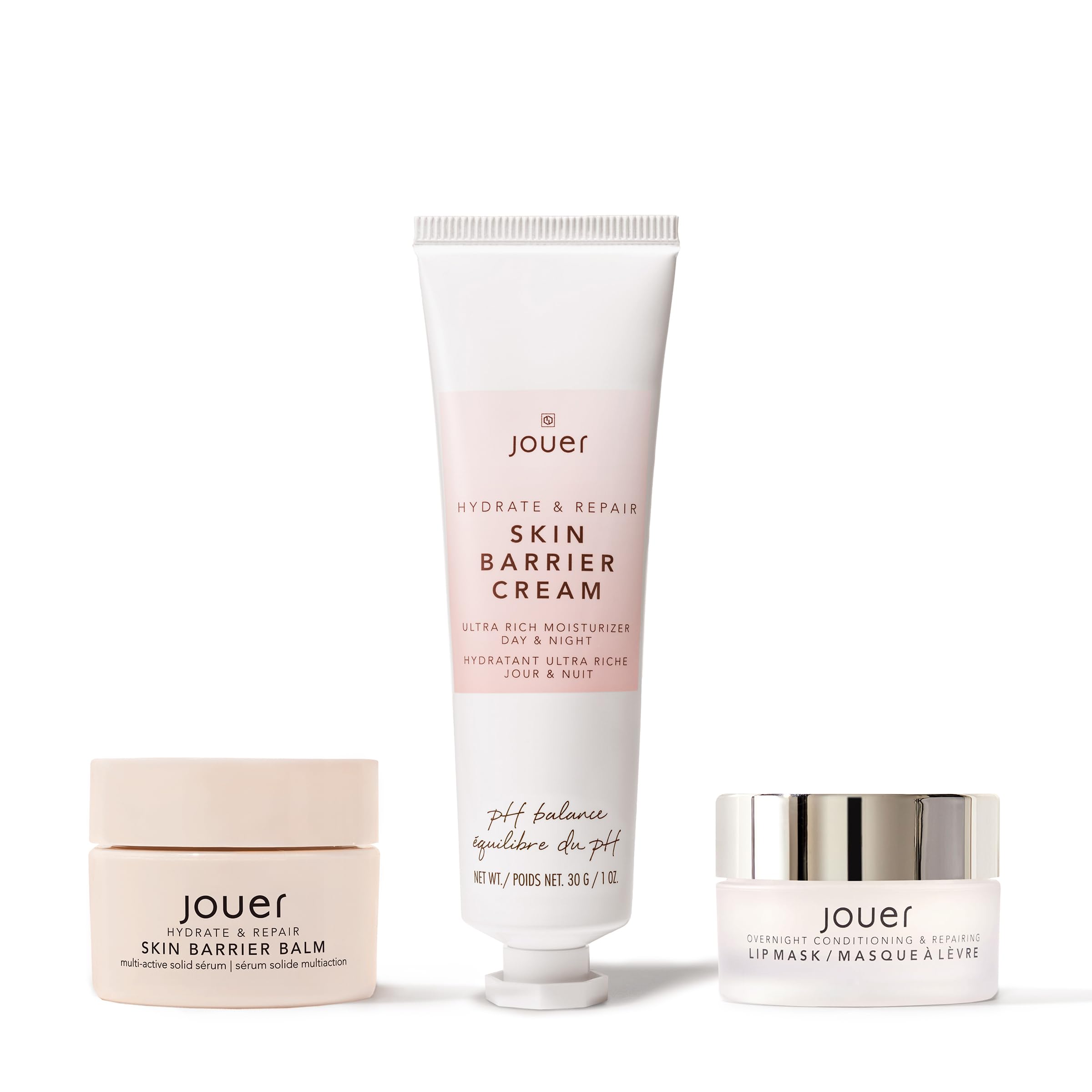 A nourishing trio designed to hydrate, repair, and protect your skin. The Barrier Cream delivers rich, non-greasy hydration, while the Barrier Balm locks in moisture and soothes dry areas. Finish with the Sweet Mint Lip Mask for soft, refreshed lips. Together, they create a protective barrier against harsh elements, leaving your skin feeling healthy and revitalized.Paraben Free. Gluten Free. Cruelty Free. Vegan. Lip Mask ingredients: Hydrating, Nourishing, Smoothing, Plumping. Grape Seed Oil is rich in Vitamin E which leave lips soft to the touch. Hyaluronic Acid helps to lock in moisture. Maxi Lip helps increase the visual fullness of lips while decreg the appearance of fine lines. Jojoba Seed Oil moisturizes, nourishes and helps soften the lips. Shea Butter acts as a protective shield to maintain suppleness in dry, flaky lips. Skin Barrier Cream ingredients: Hydrating, Smoothing, Non-Greasy, Creamy. Alpha Lipoic Acid provides antioxidant benefits to the skin. CoQ10 helps reduce the look of fine lines and wrinkles. Hyaluronic Acid naturally plumps the appearance of skin through hydration. Shea Butter acts as a protective shield to maintain hydration. Skin Barrier Balm ingredients: Hydrating, Plumping, Clarifying, Glowing Finish. Beraca Triple A helps improve oily skin health and reduce acne-related irritations. Bakuchiol helps reduces wrinkles, photoaging and hyperpigmentation as efficiently as retinol. Jojoba Seed Oil locks in moisture to keep lips soft and supple. Rose Hip Oil is high in essential fatty acids to help brighten and even skin tone for a more youthful look. This trio hydrates, repairs, and shields skin from harsh elements. Barrier Cream delivers rich, all-over moisture, the Barrier Balm locks it in and enhances glow, and the Sweet Mint Lip Mask restores softness to lips overnight. Perfect for keeping skin healthy, calm, and nourished all season long.