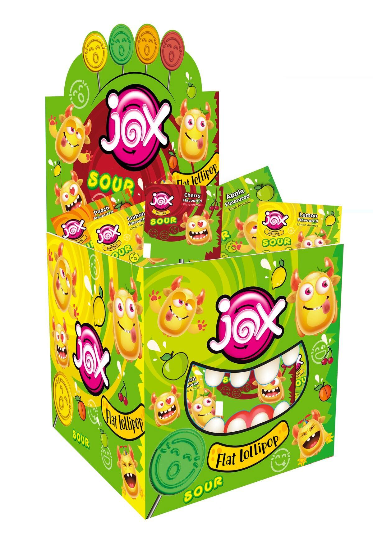 JOX Flat Embossed Face Expression Apple Lemon Peach Cherry Flavored Sour Flat Lollipop 6.2 Grx150
