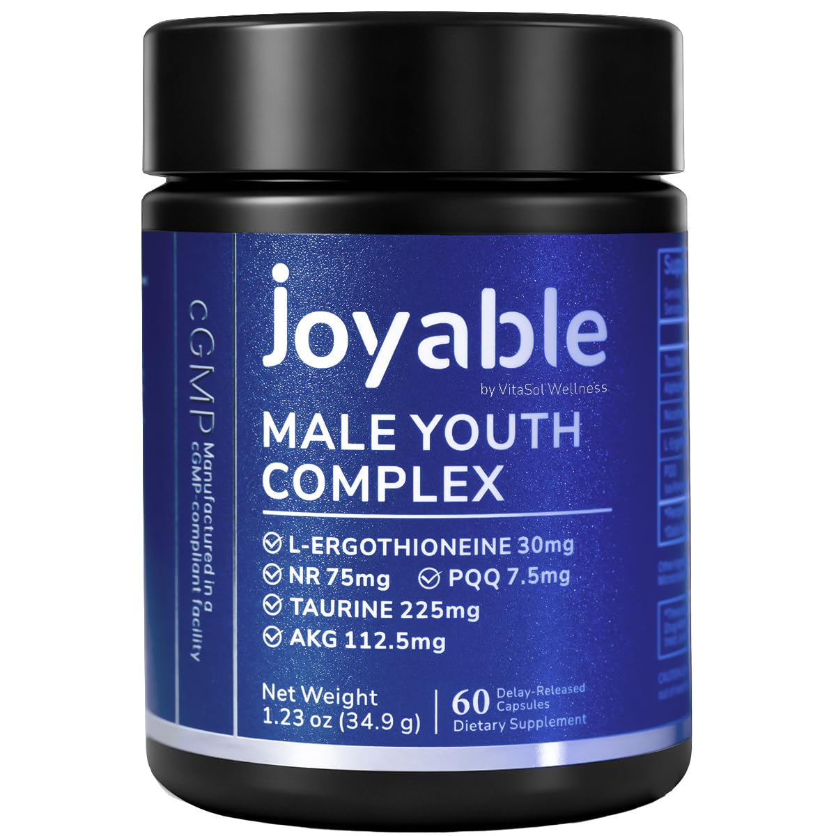 joyable by VitaSol Wellness - Male Youth Complex Cellular Energy & Healthy Aging Support Supplement with NR, PQQ & Ergothioneine | 60 Capsules