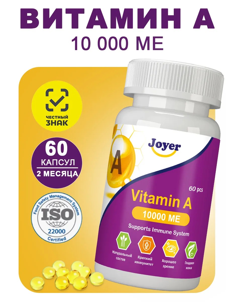 Vitamin A 10000 IU от Joyer — это мощная поддержка для вашего здоровья, красоты и отличного самочувствия!