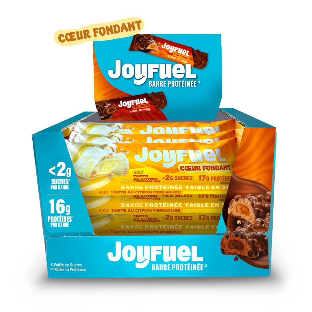 JOYFUEL Barre Protéinée Cœur Fondant - Goût Tarte au Citron Meringuée - 2g de sucre - 17g de protéines - 12 barres X 50g