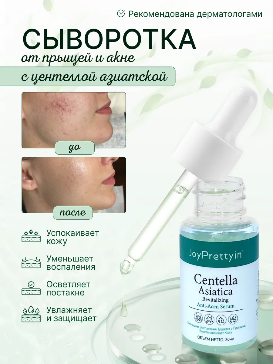 Устали от бесконечной борьбы с прыщами, жирным блеском и следами постакне? Представляем ваше секретное оружие для чистой и здоровой кожи — противовоспалительную сыворотку JoyPrettyin Centella Asiatica Serum. Это не просто уход, а мощный концентрат, разработанный специально для проблемной, жирной и комбинированной кожи лица и тела. Забудьте о высыпаниях на лице, спине, плечах и даже на ягодицах — наша формула работает везде, где это необходимо!