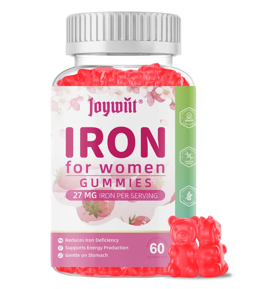 JOYWIIT Iron Gummies Iron Supplement for Women 27mg Ferrous Sulfate Gentle Iron with Vitamin C B12 E Folic Acid & Inulin to Support Energy & Healthy RBC Function Sugar Free& Vegan 60 Count