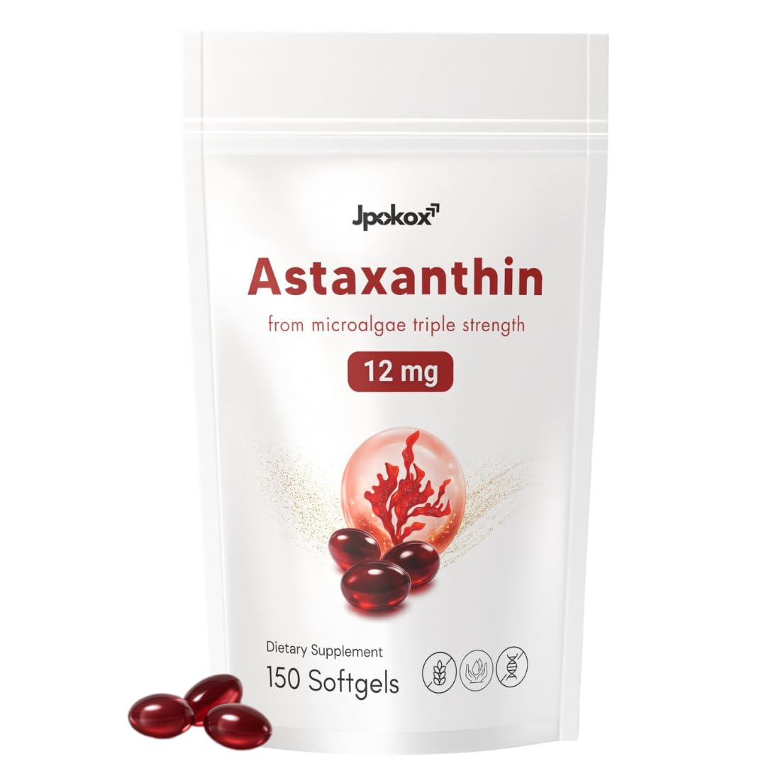 Jpokox Astaxanthin | Astaxanthin Supplements | Astaxanthinn 12mg | Astaxanthinn Supplement for Men & Women | 150 Softgels