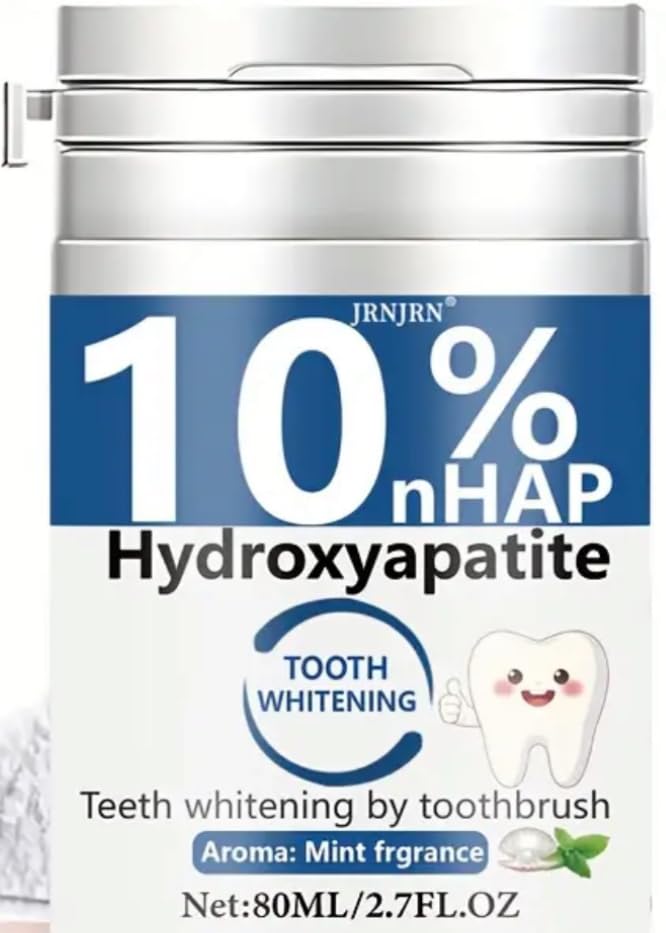 JRNJRN 10% Hydroxyapatite Tooth Whitening Powder with Mint Fragrance Natural Ingredients 80ML/2.7FL.OZ