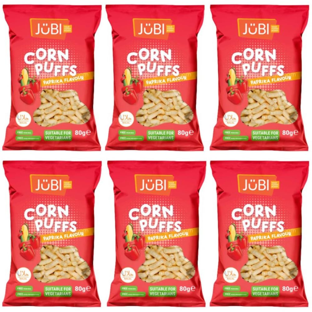 Jubi Corn Puffs Halal Certified No MSG No Preservatives Crisps Bag + FabFinds Mug (6 Pack Paprika)