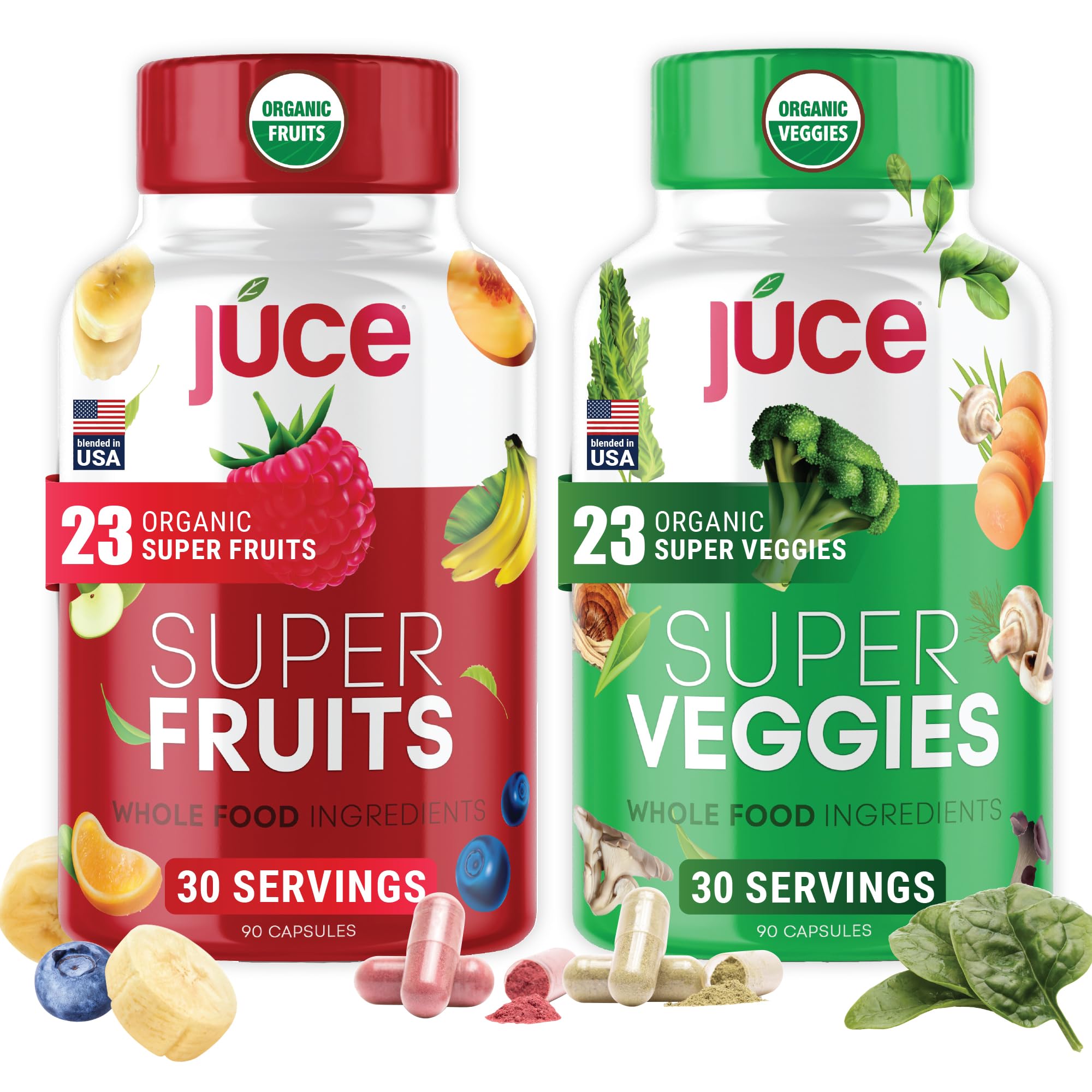 Nourish your body with a reds and greens superfood supplement that's made from pure, organic fruits and vegetables with no fillers, preservatives, or additives. Most Americans struggle to meet the CDC'S recommended daily intake of fruits and veggies, and we can relate. After all, shopping for, storing, and preparing the fresh produce needed to consume the suggested 5-9 servings per day requires a lot of planning and work. Luckily, the Super Fruits and Super Veggies supplements we offer at Terra Kai Organics provide a quick and easy way to up your daily fruit and vegetable intake. Our fruit and veggies supplement contains a curated blend of 46 ultra nutritious plants that are packed with vitamins, minerals, and antioxidants. Most importantly, unlike synthetic vitamin pills, each serving contains whole food nutrients, fiber, and enzymes that work together to maximize absorption to provide real health benefits. We only use the highest quality plants to formulate our superfood supplements. Our Super Fruits and Super Veggies blends are made with non-GMO produce that's grown exclusively on organic farms, then harvested freeze dried at peak ripeness to maximize nutrient retention. With a formula that's non-GMO, dairy free, gluten free, gelatin free, soy free vegan, our fruit and vegetable capsules are an excellent source of supplemental nutrition for most diets. Show your body the love it deserves and try Super Fruits Super Veggies today.4,000 MGS OF ORGANIC FRUITS VEGGIES! Our fruit veggie supplements are made with non-genetically modified, freshly farmed plants that are grown on organic farms. Studies have shown that organic produce is more nutritious and contains more nutrients for enhanced health benefits. PURELY PLANTS! 100 : Organic whole food ingredients Dairy Free, Soy Free, Vegan, Non-GMO Non-Gelatin Capsules. Enjoy the full body benefits of a superior superfood supplement. Our fruits and veggies vitamins contain just that–pure simple superfood plants with no fillers, preservatives, or additives. MAXIMUM NUTRIENT RETENTION: The nutritional content of plants diminishes quickly after harvesting. The plants used in our super foods supplements are picked at peak ripeness then immediately freeze dried to retain their full nutrient profile. WHOLE FOOD NUTRITION: Includes Nutrients for Cellular Repair, Plant-Based Energy, Mushrooms for Immune Support, Vegetable Fiber, Zero Calories. Enrich your diet with a fruit and veggie supplement that's packed with essential vitamins, minerals. Unlike synthetic vitamin pills, our fruit and veggie capsules contain whole food micronutrients, fiber, and enzymes that work together to maximize absorption. 46 SUPERFOODS: Each serving of our fruit veggie vitamins contains 23 rich Organic Super Fruits and 23 nutrient dense Organic Super Veggies. Diversify your diet and optimize your health with a superfood blend that includes acai, mushrooms, broccoli, and so much more.