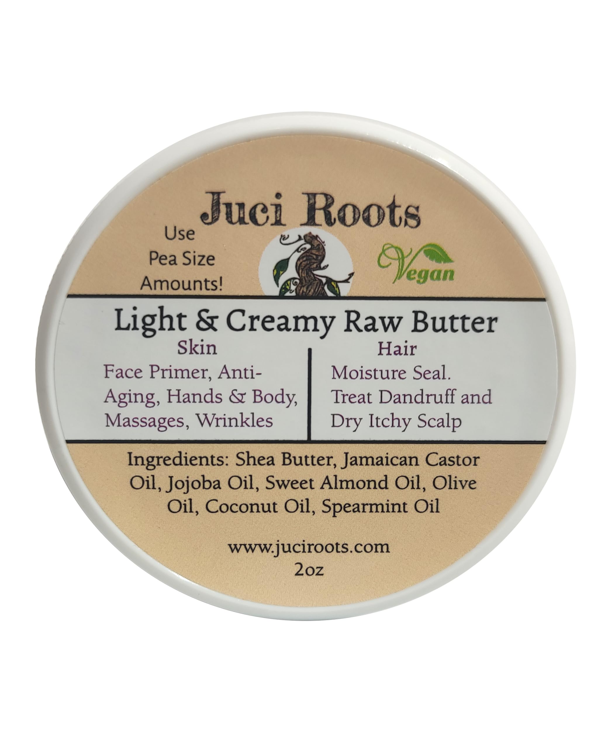 Light Creamy Raw Butter was designed to glide over dry skin and absorb completely, leaving it soft, and shiny. Light Body Butter Anti Aging Cream No Greasy Residue Help rashes A face moisturizer Flexible hair butter Relieve dandruff itchy scalp Relax a tight, sore muscle Reduce wrinkles An organic Natural, Healthy option for skin Delicate enough to smooth wrinkle on the face, neck, and body without leaving a greasy film. The Spearmint helps with dandruff and relax a sore muscle. Butters will absorb into the hair, scalp, and skin.
