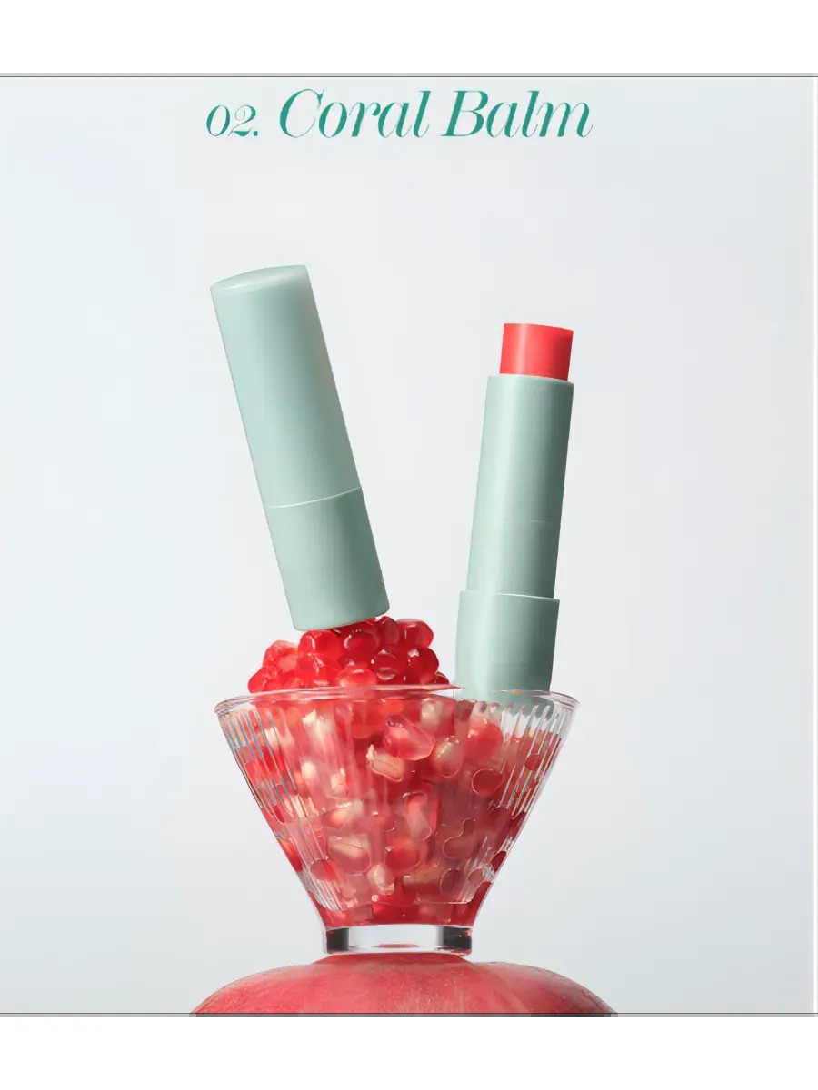02 Coral - a warm coral tone that adds freshness and brightness to lips, giving them a healthy and playful look.