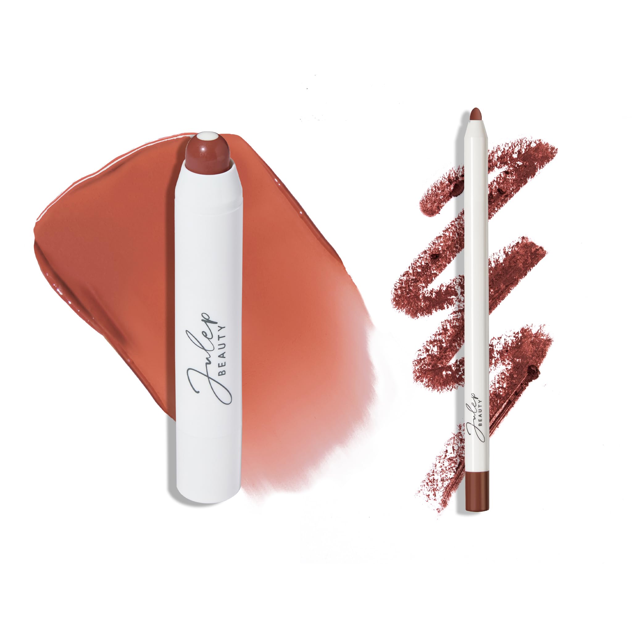 Enhance your lips with this Julep duo. The It's Balm: Tinted Lip Balm in Sahra Sunset provides a pop of buildable color and nourishing hydration for a soft, natural look. Pair it with the With a Trace Retractable Long-Lasting Lip Liner in Spiced Clove for precise definition and smooth, lasting color.