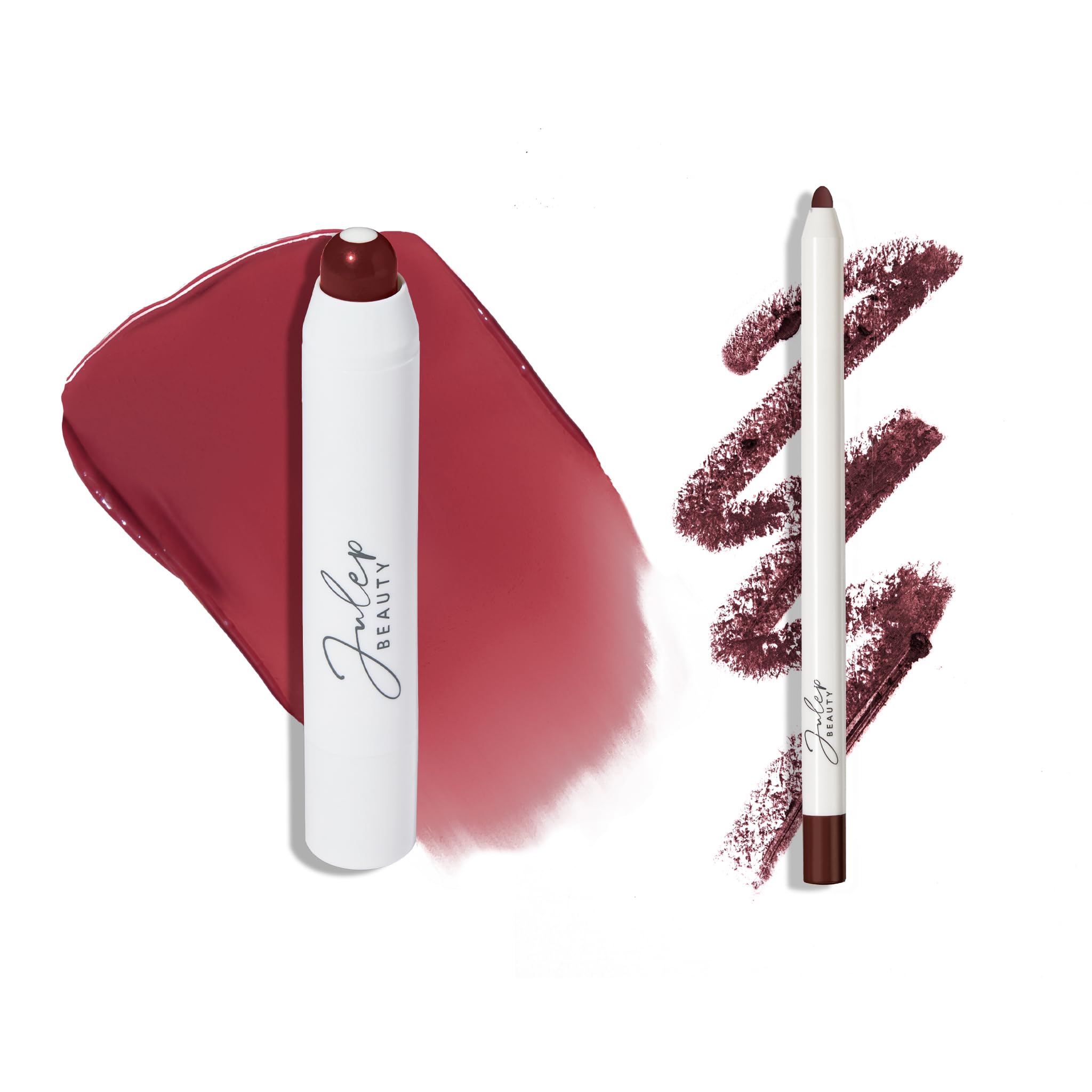 Trace the lip liner along the contours of your lips before applying lip color, or use to completely fill in lips for full-coverage color. The moisturizing tinted lip balm gives you smooth, rich color on the go. Simply glide directly across lips for instant impact, layering with your lip liner. You want your lip liner and lip color to match and coordinate for the best results. With this all in one lip duo, we took the guesswork out of mixing and matching. Each liner and lip balm pairs together perfectly for a flawless lip look. It's the nourishing Vitamin E core that put Julep's iconic It's Balm lip tints on the map, delivering soothing and smoothing moisture with a pop of natural glossy color. When you add the longwearing pigments in the twist-up lip liner, this lip kit is a win-win. The viral tinted lip balms meet our brand new long-lasting lip liners, and the pout possibilities are truly endless. Lock in your color or use each retractable lip liner to intensity each shade and create the look of fuller, more defined lips. Fill, enhance and contour your pout with this coordinating deep brown nude lip liner and moisturizing lip tint.