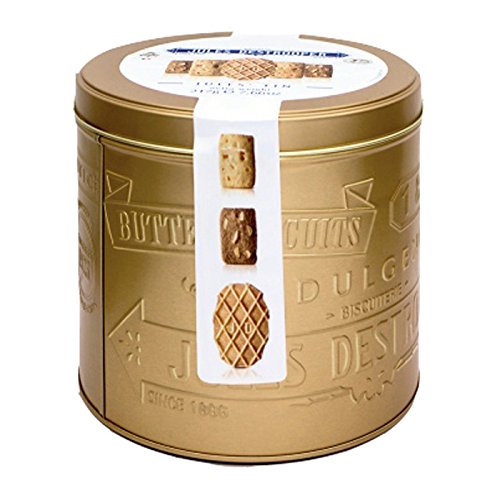 Assortment of biscuits presented in a metal box consisting of: 75 gr. of almond biscuits, 75 gr. 75 gr. of butter biscuits and 65 gr. 65 gr. of apple biscuits. Ingredients Wheat flour, sugar, butter, caramel powder, eggs, almonds, apple pieces, caramel syrup, yeast, sea salt, strawberry essence and cinnamon.Quantity: 217 g. Area: Belgium. Assortiment de biscuits présenté dans une boîte métallique composée de : 75 gr. de biscuits aux amandes, 75 gr. 75 gr. de biscuits au beurre et 65 gr. 65 gr. de biscuits aux pommes. Ingrédients Farine de blé, sucre, beurre, caramel en poudre, œufs, amandes, morceaux de pommes, sirop de caramel, levure, sel marin, essence de fraise et cannelle.Quantité : 217 g. Zone : Belgique.