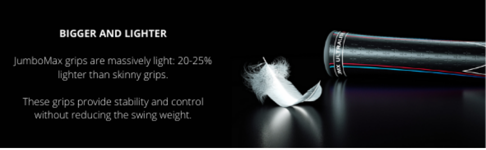 TWIST-RESISTANT STABILITYCORE: Our UltraLite golf club grip offers maximum performance in the rough, it is firm, stable and won’t tear up from your hands even with all the hours of practice. SUPER OVERSIZED GRIP PROFILE: this golf club grips oversized were developed to increase clubhead awareness, the UltraLite provides all the stability of a Jumbo Max extra large grip without reducing the swing weight. THE JMX ULTRALITE DEBUTES TRI-TEXTURE: with specially designed surface details placed in specific areas of the golf driver grip to boost performance, feel, and all-weather playability. ULTRALITE CONSTRUCTION: The JMX UltraLite golf grips oversize promotes light even golf grip pressure, it was created to be massively light: 20-25% lighter than skinny grips. A MAJOR WINNER: This Ultralite jumbo golf grips were used by 2020 U.S. Open Champion Bryson DeChambeau to max out the speed and reduce the overal weight of the club.