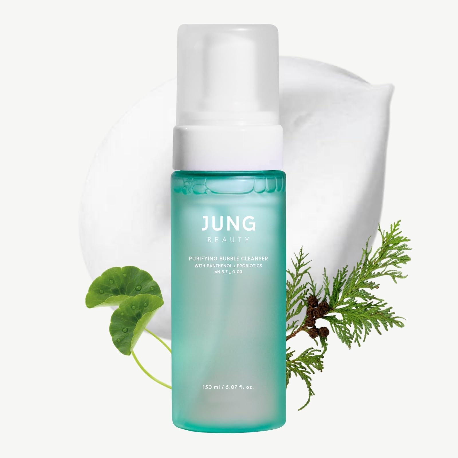 Jung Beauty Purifying Bubble Cleanser - Korean Foaming Face Wash with Panthenol & Probiotics Gentle Pore Deep Cleansing for Sensitive Skin Hydrating Hinoki Scent 150ml