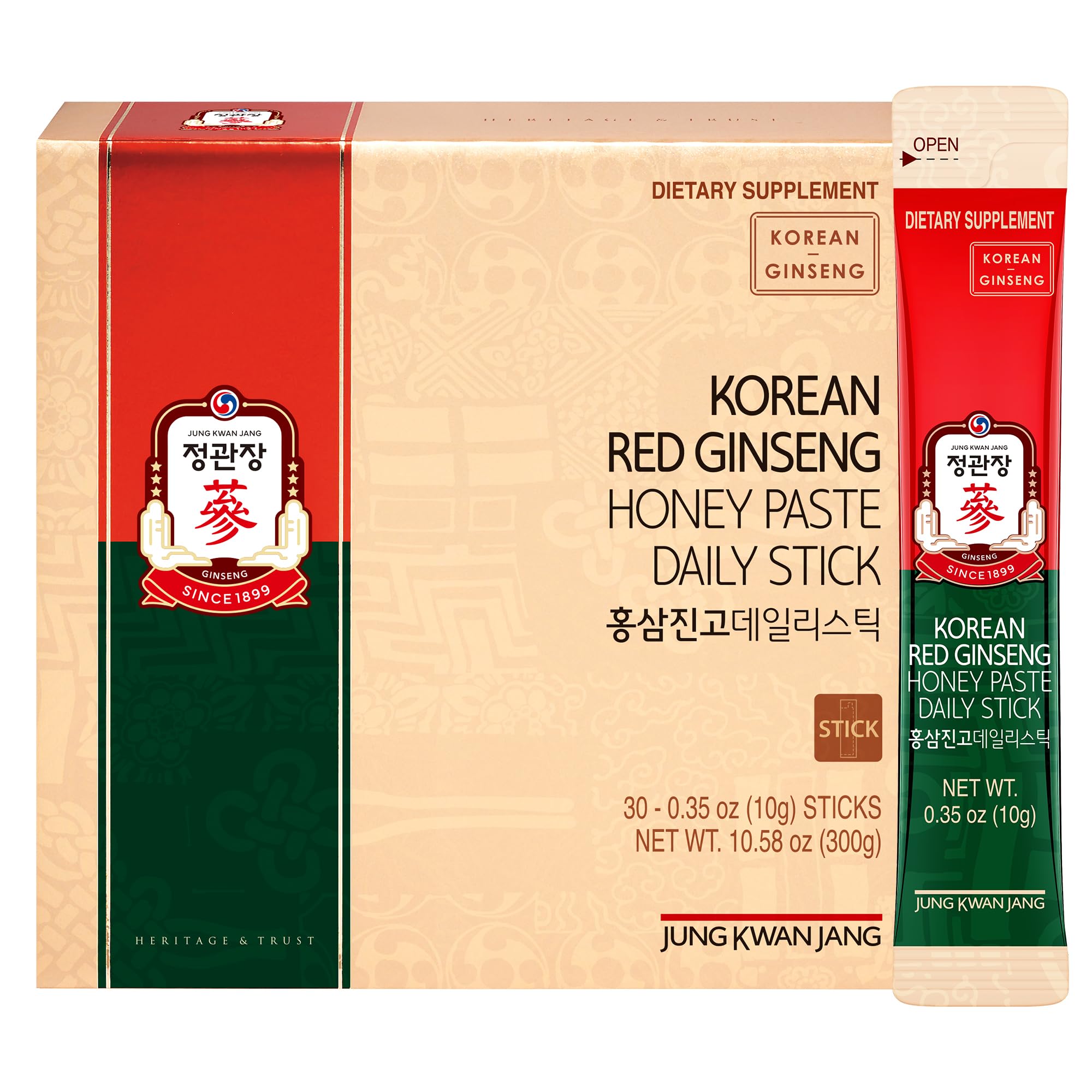 FIGHT BURNOUT : How many of us feel like it's so hard to get through the day? Maintain your energy levels and brain focus. Get a natural, sustained energy boost with ginseng. MUSHROOM BOOST : This product contains two types of mushroom extracts. The poria mushroom extract is known for supporting the immune health and digestive system, while the rehmannia root extract supports immune health. 1 GINSENG BRAND IN THE WORLD : When it comes to a high quality product like ginseng, you do not want to go with a no-name brand. JungKwanJang has been considered the top brand in the world for 120 years!. JIN GO DAILY : Honey Korean Red Ginseng Sticks are the perfect pick-me-up for those who are always on the run. This all-in-one liquid stick formula is a mixture of concentrated nature's superfoods including 500mg Korean red ginseng, 300mg Honey, 441 mg Poria Mushroom Extract, and 459mg Rehmannia Root Extract, so you can recover quickly and have the energy to workout or stay focused on daily tasks. KOREAN RED GINSENG : The health benefits of Korean Red Ginseng (Panax Ginseng) have long been known and well studied by a wide range of medical and herbal experts. It helps to boost the immune system, support overall mood and brain function for memory focus, increase blood circulation, help boost nitric oxide and blood flow and increase energy. Unleash your potential with this all natural energy booster!. NATURAL ENERGY BOOSTER : This Ginseng Korean Drink is designed to provide wellness benefits when you need an energy drink to help get you through the day. It support a steady burst of energy to help you naturally increase productivity and stay focused. It helps provide you with a natural boost of energy, so you can go about your day without any side effects. PRE POST WORKOUT ENERGY DRINK : This Korean Red Ginseng Drink can be taken before and after your workout to help speed up recovery time, muscle soreness and support endurance while exercising. With natural ingredients, it's the perfect Pre Post workout drink or healthy lifestyle choice for anyone who wants to support their health while still enjoying a delicious beverage!.