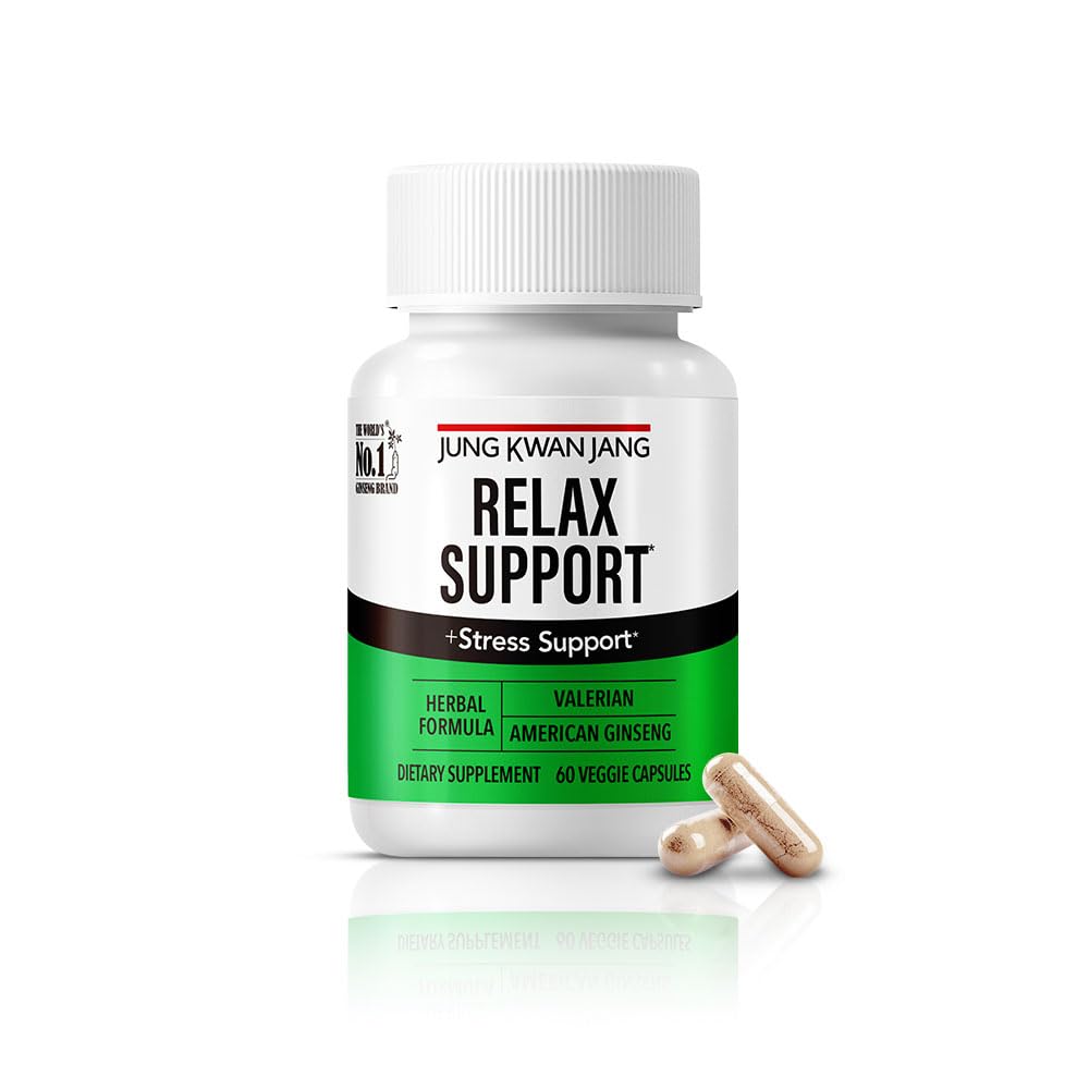 JUNG KWAN JANG Relax with Valerian Root (1,000mg) and American Ginseng (143mg) for Relaxation Support and Better Sleep, 60 Herbal Capsules for Men and Women RELAX SUPPORT with valerian
