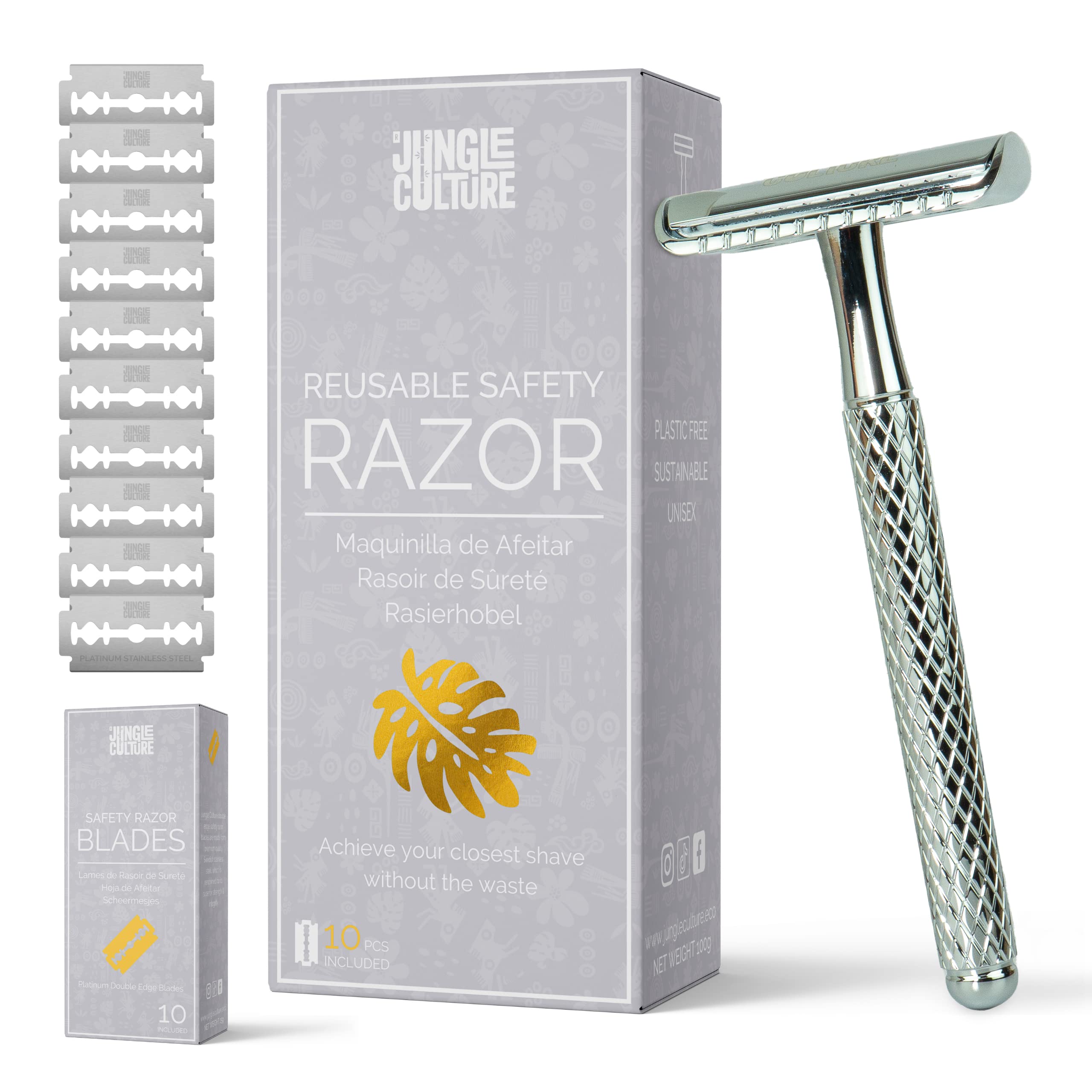 Jungle Culture Plastic-free metal razor for women and men enter the footsteps of our popular razors with bamboo grip.They offer the smooth beauty swap for everyone who wants to reduce their CO2 footprint.Available in four refreshing colors: mint green, pastel pink, sky blue blue -green.Our reusable unisex razors make the shave stylish and help them to be more sustainable. Jungle Culture's sustainable women's razors are made of high -quality, durable chrome and have a structured grip for additional hold.They work with double -edged razor blades, which are easily attached to the device by turning off the head.Our razors can be used on all parts of the body and are guaranteed to hold for a lifetime. Scope of delivery: metal razor for women and men in 8 colors. 10 Additional blades are included in the set As a responsible brand, we want to make it easier for you to switch to plastic -free shaving sustainable life.In addition to the perfect shave, the alternative to disposable razors from Jungle Culture offers you a clear conscience. Did you know that billions of one-way plastic razors and blades end up on landfill deponies every yearThey cannot be recycled and never decompose so that our environment leaves a high legacy. Environmentally friendly gift. Our striking razor planes are an ideal gift for the eco -warrior in their life - whether it is one or one, our traditional razor planes are unisex and offer better shaving.60 days of money-back guarantee: Jungle Culture is a member of the global organization and movement "1 for the planet".We are confident that you will love our reusable razor planes with blades and sustainable beauty products.However, if you are dissatisfied for some reason, Jungle Culture offers you a money-back guarantee within 60 days.Safety RASIER SET: Jungle Culture Security Razing for women are environmentally friendly and the perfect alternative to disposable razors.Billions of disposable razors and cartridges are disposed of every year.Our vegan metal security razors are the perfect zero-sip-swap and ensure a wonderfully clean shaving experience.Community: Our environmentally friendly razors are delivered with 10 recyclable, double -edged blades as well as a comprehensive, free razor thread full of tips and tricks that help you achieve the gentlest shaving.Join the thousands of other members of our environmentally conscious TIKTOK community that make a big difference and we will help you to introduce a sustainable shaving routine.zero-waste eco-shaver: The environmentally friendly razor by Jungle Culture is made of high-quality, durable chrome.You work with double -cut razor blades, which are attached to the device by simply turning the head.Our environmentally friendly women's razors with a blade can be used for all parts of the body, including legs, bikini zones and face, and guarantee you a perfect shave.Razor plane for women and men: Our lively collection of classic double-blade safety razors will change your idea of shaving.Get the best and most thorough shave with our perfectly balanced, plastic -free, reusable razor, and make skin irritation and shaving fire a thing of the past.Jungle Culture Kunststofffreie Metall-Rasierer für Damen und Herren treten in die Fußstapfen unserer beliebten Rasierer mit Bambusgriff. Sie bieten den reibungslosen Schönheitsswap für alle, die ihren CO2-Fußabdruck reduzieren möchten. Erhältlich in vier erfrischenden Farben: Mintgrün, Pastellrosa, Himmelblau Blaugrün. Unsere wiederverwendbaren Unisex-Rasierer machen die Rasur stilvoll und helfen Ihnen, nachhaltiger zu sein. Jungle Culture's nachhaltige Damenrasierer sind aus hochwertigem, langlebigem Chrom gefertigt und haben einen strukturierten Griff für zusätzlichen Halt. Sie arbeiten mit zweischneidigen Rasierklingen, die durch Abdrehen des Kopfes leicht im Gerät befestigt werden. Unsere Rasierer können an allen Körperteilen verwendet werden und halten garantiert ein Leben lang. Lieferumfang: Metallrasierer für Damen Herren in 8 Farben. 10 zusätzliche Klingen sind im Set enthalten Als verantwortungsvolle Marke wollen wir Ihnen den Wechsel zur plastikfreien Rasur nachhaltigem Leben erleichtern. Neben der perfekten Rasur bietet Ihnen die Alternative zu Einwegrasierern von Jungle Culture ein gutes Gewissen. Wussten Sie, dass jedes Jahr Milliarden von Einweg-Kunststoff-Rasierern und -klingen auf Mülldeponien landenSie können nicht recycelt werden und zersetzen sich niemals, so dass unsere Umwelt ein hohes Erbe hinterlässt. Umweltfreundliches Geschenk. Unsere auffälligen Rasierhobel sind ein ideales Geschenk für den Öko-Krieger in Ihrem Leben - egal ob es sich um einen Er oder eine Sie handelt, unsere traditionellen Rasierhobel sind unisex und bieten eine bessere Rasur.60 TAGE GELD-ZURÜCK-GARANTI : Jungle Culture ist Mitglied der globalen Organisation und Bewegung "1 for the Planet". Wir sind zuversichtlich, dass Sie unsere wiederverwendbaren Rasierhobel mit Klingen und nachhaltigen Schönheitsprodukte lieben werden. Sollten Sie jedoch aus irgendeinem Grund unzufrieden sein, bietet Jungle Culture Ihnen eine Geld-zurück-Garantie innerhalb von 60 Tagen. SICHERHEITSRASIERER-SET: Jungle Culture Sicherheitsrasierer für Frauen sind umweltfreundlich und die perfekte Alternative zu Einwegrasierern. Milliarden von Einwegrasierern und -kartuschen werden jedes Jahr entsorgt. Unsere veganen Metall-Sicherheitsrasierer sind der perfekte Zero-Waste-Swap und sorgen für ein wunderbar sauberes Rasurerlebnis. GEMEINSCHAFT : Unsere umweltfreundlichen Rasierer werden mit 10 recycelbaren, zweischneidigen Klingen sowie einem umfassenden, KOSTENLOSEN Rasierleitfaden voller Tipps und Tricks geliefert, die Ihnen helfen, die sanfteste Rasur zu erzielen. Schließen Sie sich den Tausenden von anderen Mitgliedern unserer umweltbewussten TikTok-Community an, die einen großen Unterschied machen, und wir werden Ihnen helfen, eine nachhaltige Rasierroutine einzuführen. NULL-ABFALL-ÖKO-RASIERER