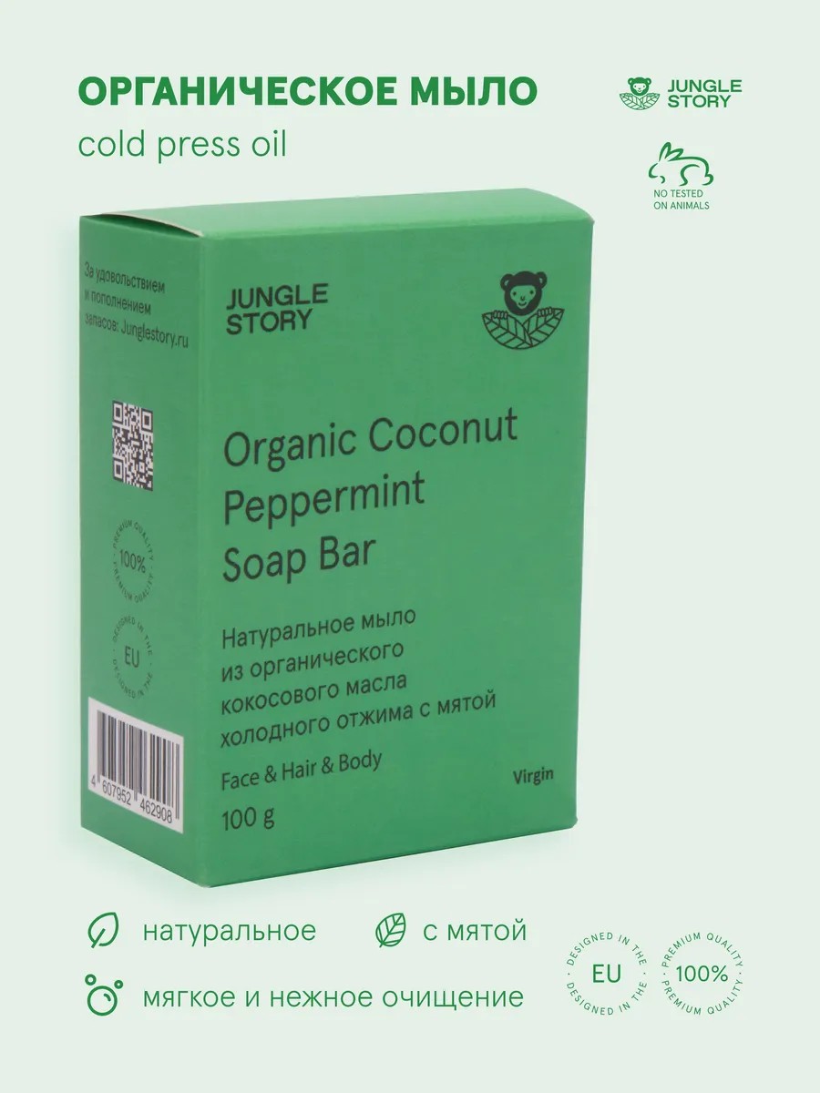 Натуральное мыло из органического кокосового масла холодного отжима с мятой.