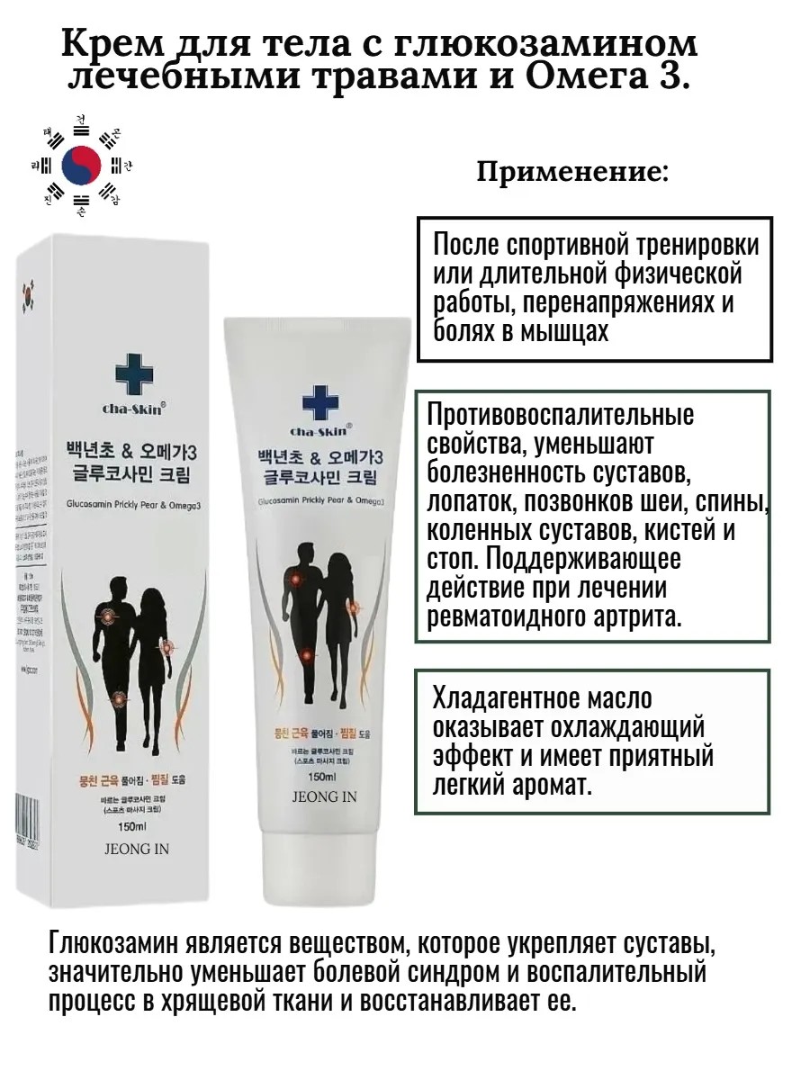 Крем для тела с глюкозамином лечебными травами и Омега 3