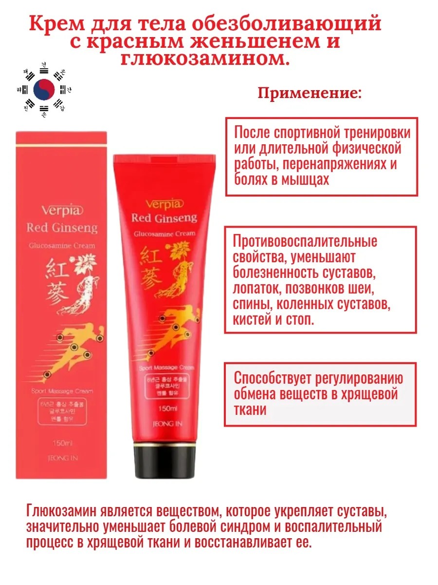 Крем для тела обезболивающий с красным женьшенем и глюкозамином.