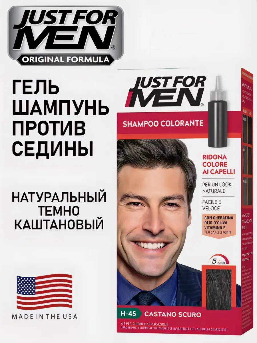 Полуперманентный окрашивающий гель для мужчин от Just For Men. Долговечный оттеночный шампунь подходит для мужчин со светло-коричневыми волосами, 100% натуральный вид.