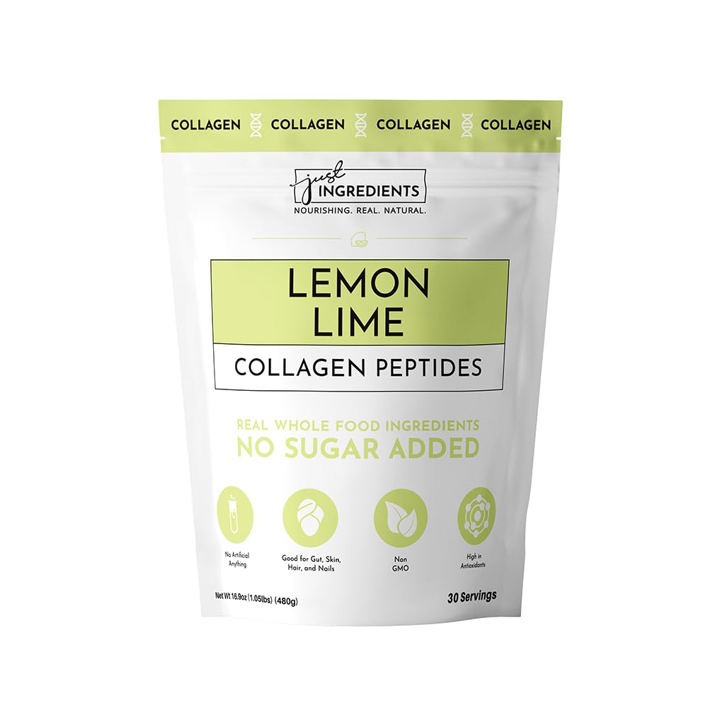 Support beauty, joints, and digestion with Just Ingredients Lemon Lime Collagen Peptides. Each serving delivers hydrolyzed types I III collagen peptides, providing essential proteins to support skin elasticity, hair and nail strength, joint comfort, and gut balance. Collagen is hydrolyzed for absorption, ensuring your body can effectively use it. The refreshing lemon lime flavor mixes easily in water, making collagen support enjoyable and convenient. Each box includes 20 stick packs, ideal for at-home or on-the-go use. Free from artificial fillers, dyes, and preservatives, this collagen powder is third-party tested for safety and potency. A simple way to support daily beauty and wellness, collagen peptides provide essential support for skin, joints, and overall vitality.THIRD-PARTY VERIFIED QUALITY – Tested for purity, potency, and safety so you can trust every scoop. 30 SERVINGS PER BAG – A full month of collagen peptides to help you stay consistent with your wellness goals. MIXES SMOOTHLY CONVENIENT – Dissolves easily in water or blends seamlessly into smoothies without clumping. SUGAR-FREE CLEAN FORMULA – Sweetened with monk fruit and stevia, free from artificial sweeteners, fillers, and dyes. HYDROLYZED FOR ABSORPTION – Broken down into smaller peptides for easier digestion and better absorption by the body. 20G PROTEIN PER SERVING – Each scoop provides high-quality protein to help with satiety, post-workout recovery, and muscle maintenance. PROMOTES SKIN, HAIR NAIL HEALTH – Supports skin elasticity, healthy hair growth, and stronger nails with consistent use. SUPPORTS JOINT COMFORT MOBILITY – Helps maintain cartilage strength and joint flexibility to support active lifestyles. GRASS-FED HYDROLYZED COLLAGEN – Derived from bovine collagen, providing Types I III to support skin, joint, and connective tissue health. BRIGHT LEMON LIME FLAVOR – A crisp, citrusy blend of lemon and lime that makes getting your daily collagen refreshing and easy.