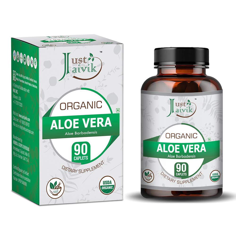 Just Jaivik Organic Aloe Vera Tablets - A Dietary Supplement - 750 mg (Pack 90 Organic Tablets) | for All Wellness and Rejuvenation