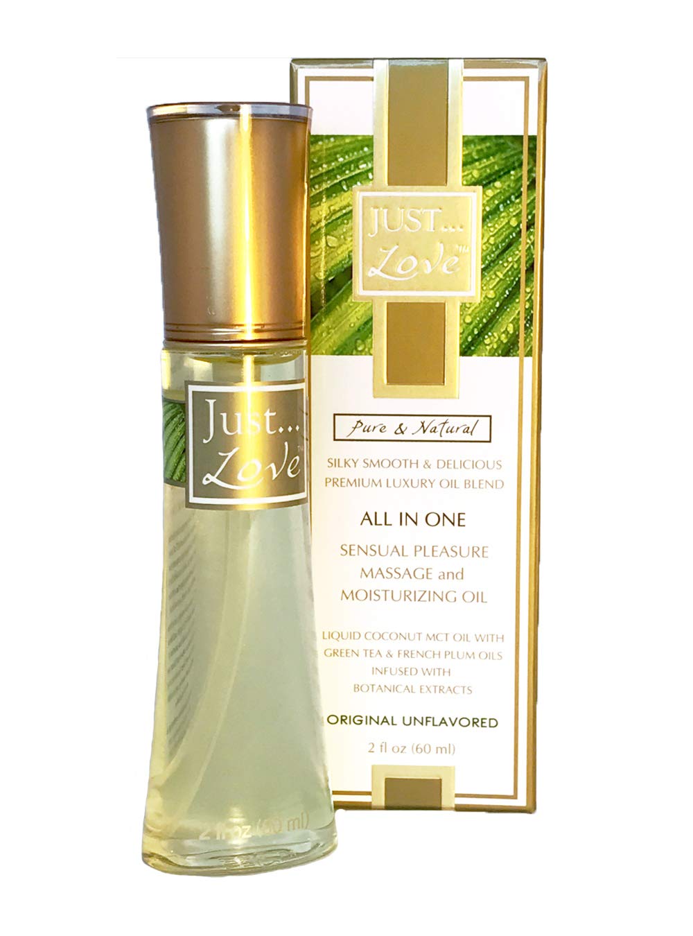 Better In Every Way, Worth Every Penny! JUST Love is a unique, versatile 'All-In-One' skin care product that can be enjoyed freely as a sensual massage oil, all over body moisturizer, and feminine intimate moisturizer for wonderful slip and glide. Silky smooth, feels, smells, tastes and performs great. Leaves your skin nourished, soft as velvet and does not need to be washed off after use. JUST Love is a wonderfully natural feeling, non greasy formula that enhances the sensation of touch and soothes dry and delicate skin. A little goes a long way, lasts a long time, won't dry up and turn sticky like aloe and other water based products! Specially formulated with premium coconut MCT oil and other organic oils infused with organic whole leaf botanicals known for skin nourishing, soothing and healing properties. 100 Vegan, natural and edible, non-GMO, organic plant based ingredients with delicious organic natural citrus and peach fruit flavors. Zero chemicals or preservatives and gluten, soy and corn free. Designed for sensitive skin and bodies, JUST Love is recommended by top Women's Health Practitioners. Deliciously edible with organic natural flavors, no added sweeteners, perfumes. Original Unflavored version has only the natural delicate taste scent inherent to the French plum oil in the base formula and the four other delicious fruit flavor blends to choose from for fun and variety are designed after exotic destinations to make your experience even more romantic. JUST Love's formula is amazingly stable even without preservatives and will not go rancid. Product shelf life 3 years from date of manufacture. Manufactured in a certified Organic facility in Oregon. BPA free bottle, all recyclable packaging. No mess pump for clean application. Portion of all proceeds donated to Women's Health and Education. JUST Love has won many awards for one the best new body care products for 2015 and 2016!Non GMO, gluten, soy, corn free. Delicious organic natural fruit flavors, no added sugar. Premium Organic, Zero preservatives, zero chemicals. 100 natural, edible plant based ingredients. All In One Sensual Pleasure, Massage Moisturizing Oil.