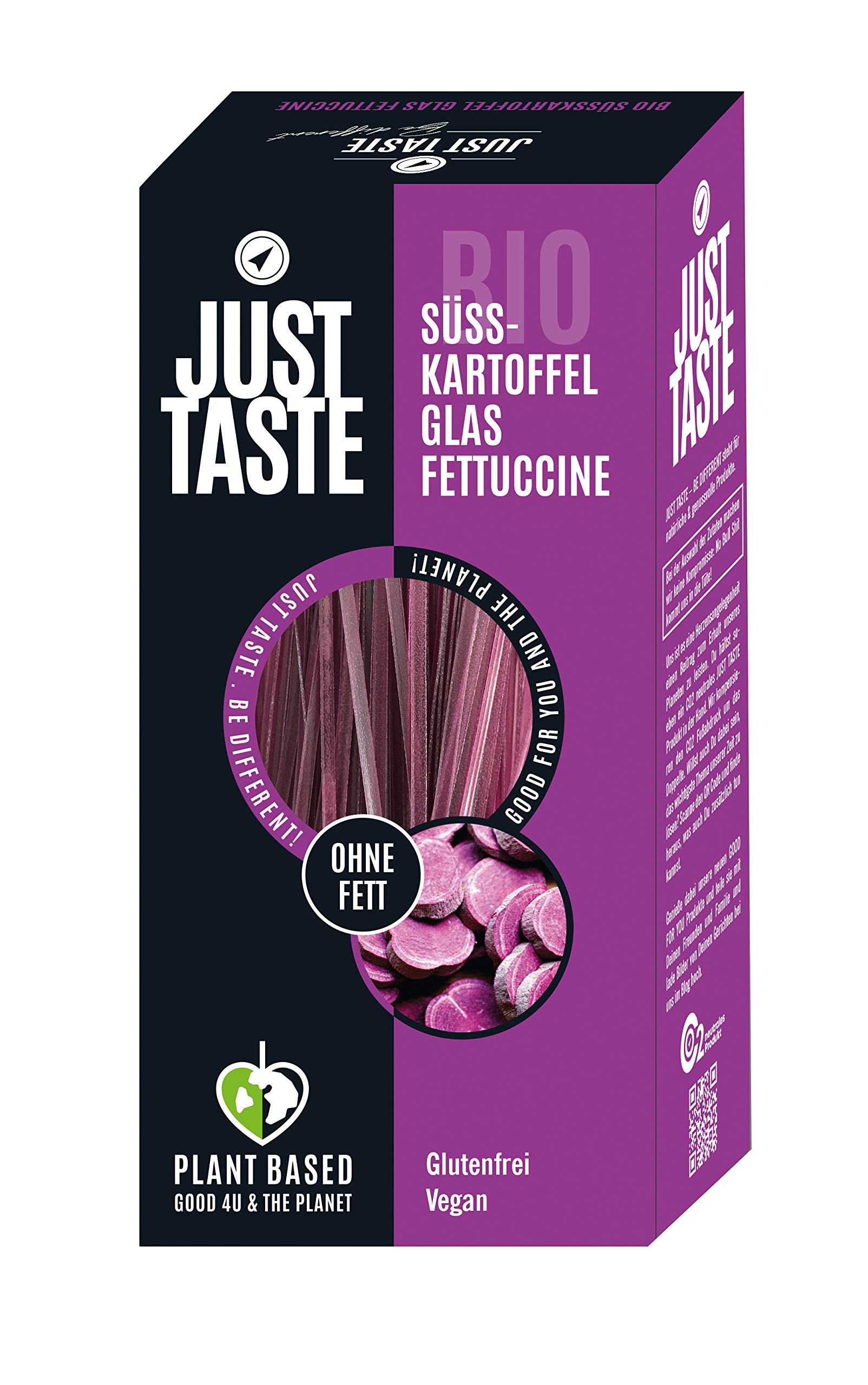 Just Taste Be different JUST TASTE Lilac Sweet Potato Fettuccine Pot The new organic plant-based pasta 250 g