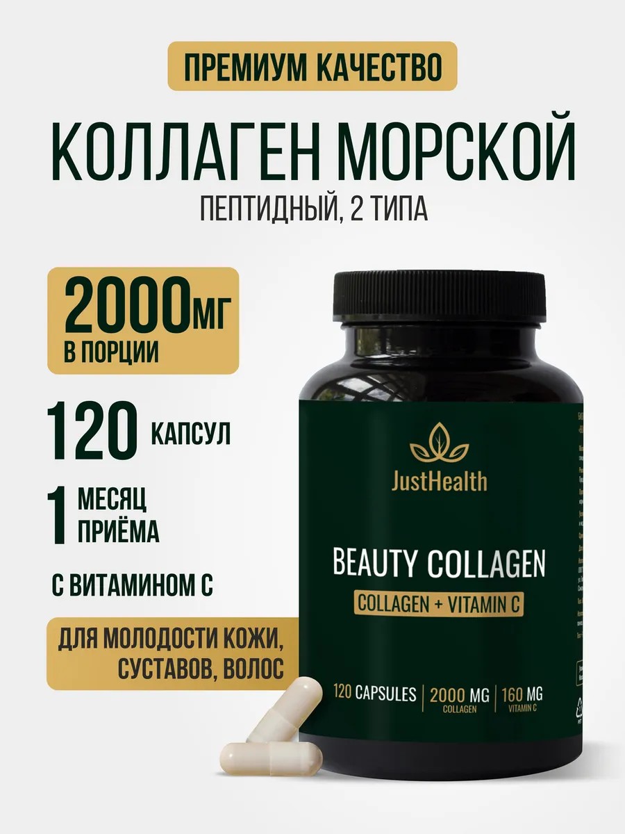 JustHealth Морской коллаген с витамином С капсулы, 120 штук