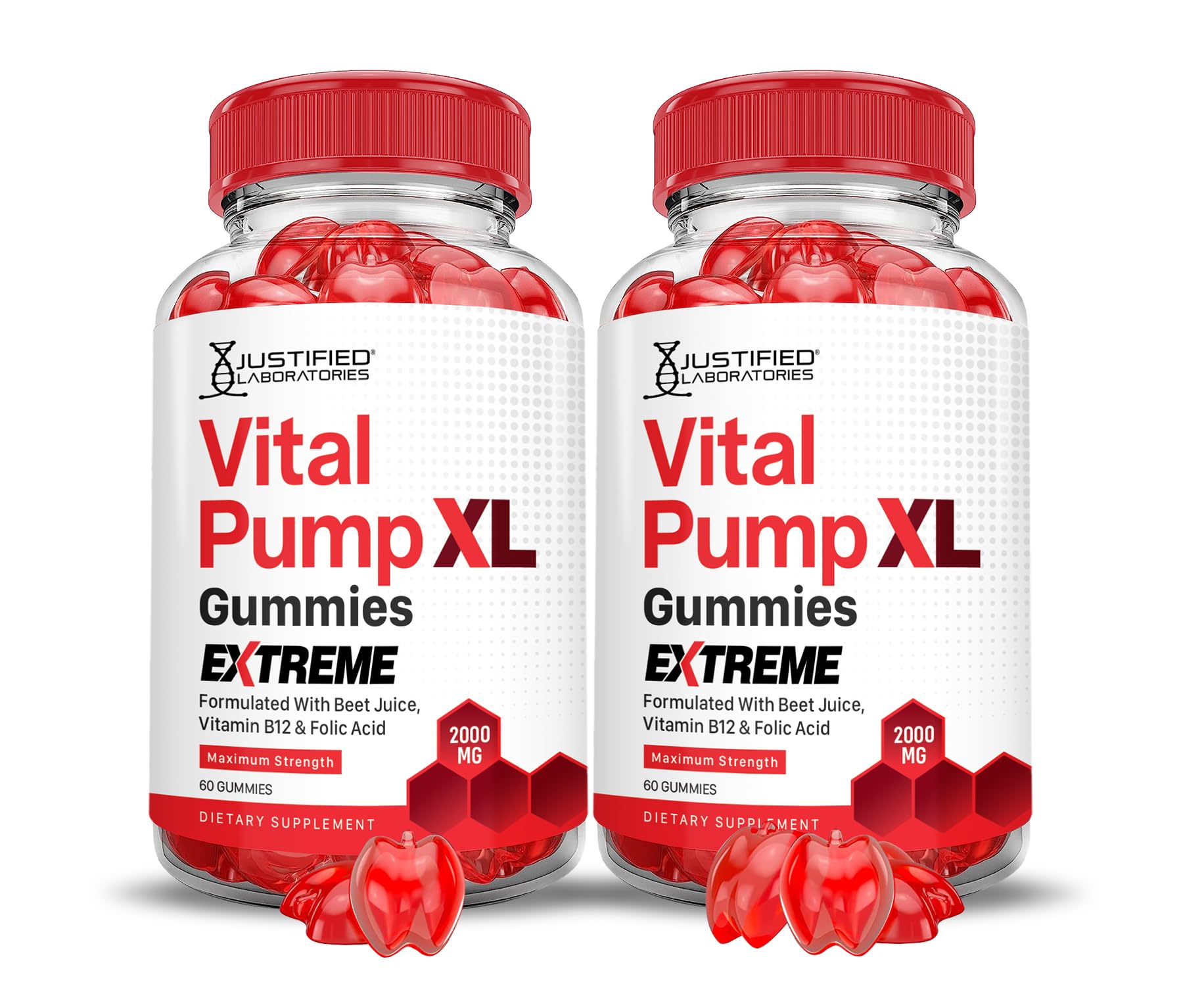 Justified Laboratories (2 Pack) Vital Pump XL Extreme 2000MG Performance Gummies Vital PumpXLAdvanced Formula Formulated with Beet Juice ACV Pomegranate Powder B12 Vegan Non GMO 120 Gummys