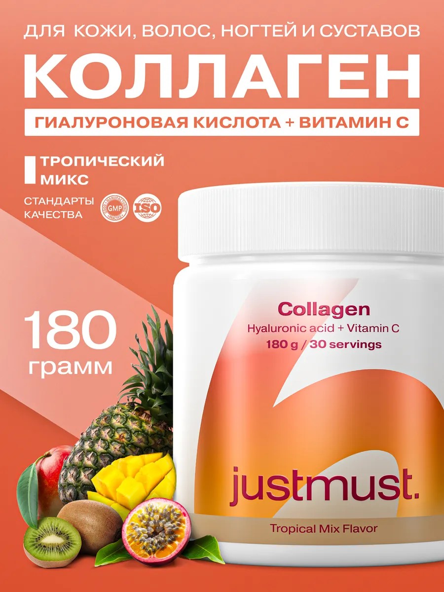 JUSTMUST Коллаген порошок с гиалуроновой кислотой Тропический