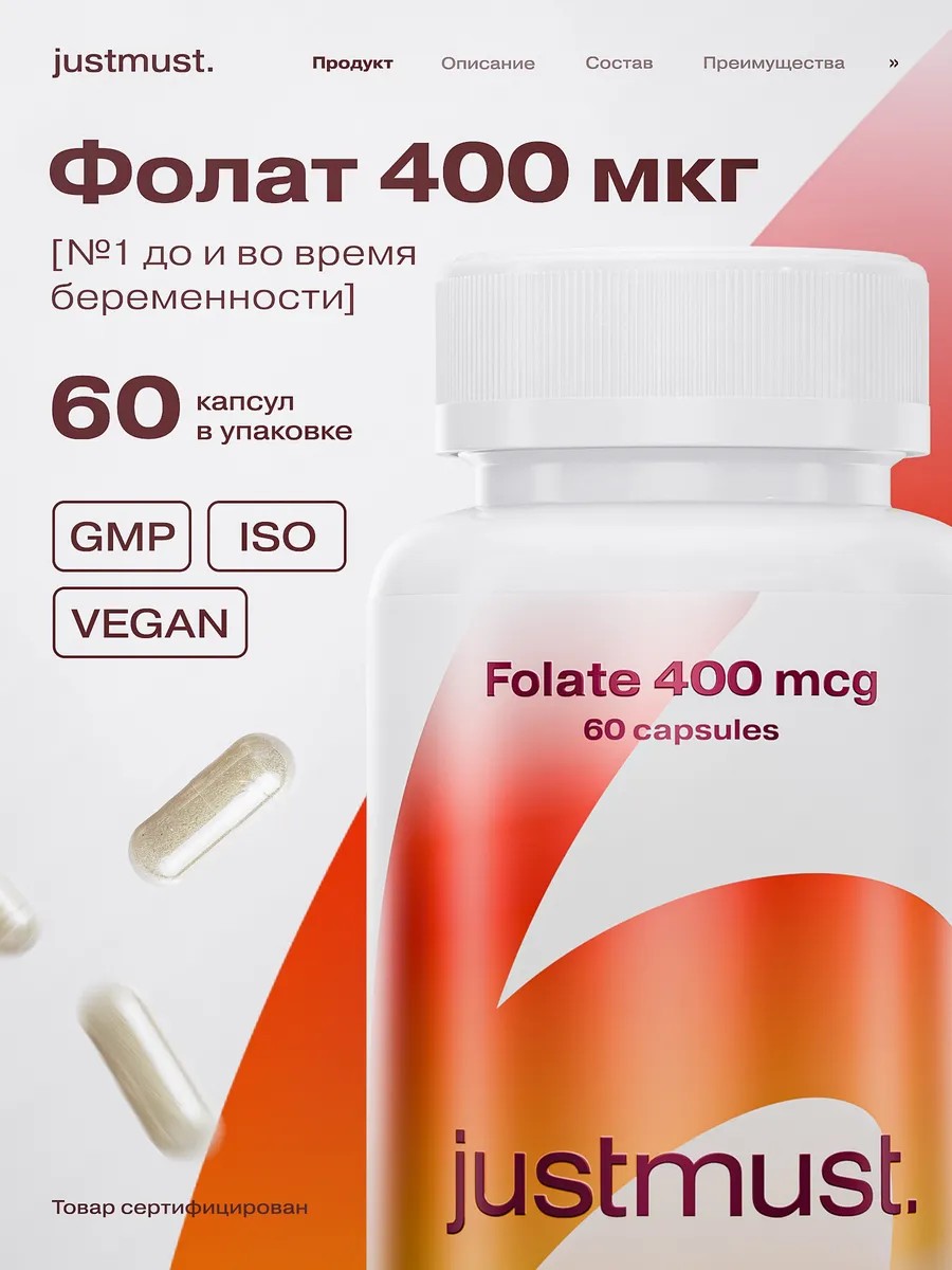 Метилфолат кальция от JUSTMUST - это биологически активная добавка, которая содержит витамин B9 - легкоусвояемая форма фолиевой кислоты