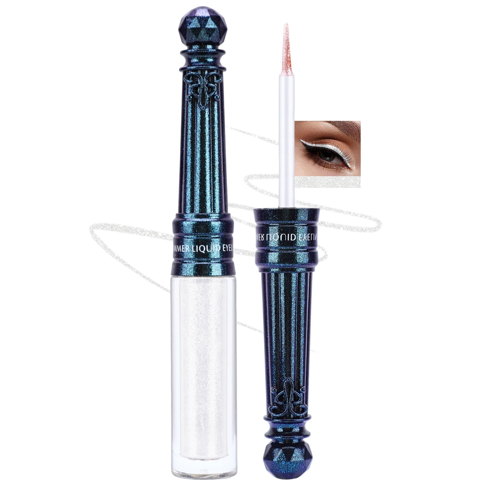 Jutqut Glitter Liquid Eyeliner Waterproof High Pigment Long-Lasting Waterproof Eyeliner Pen Long-Lasting Liquid Eyeliner Blanc Metallic Eyeliner Pen #01